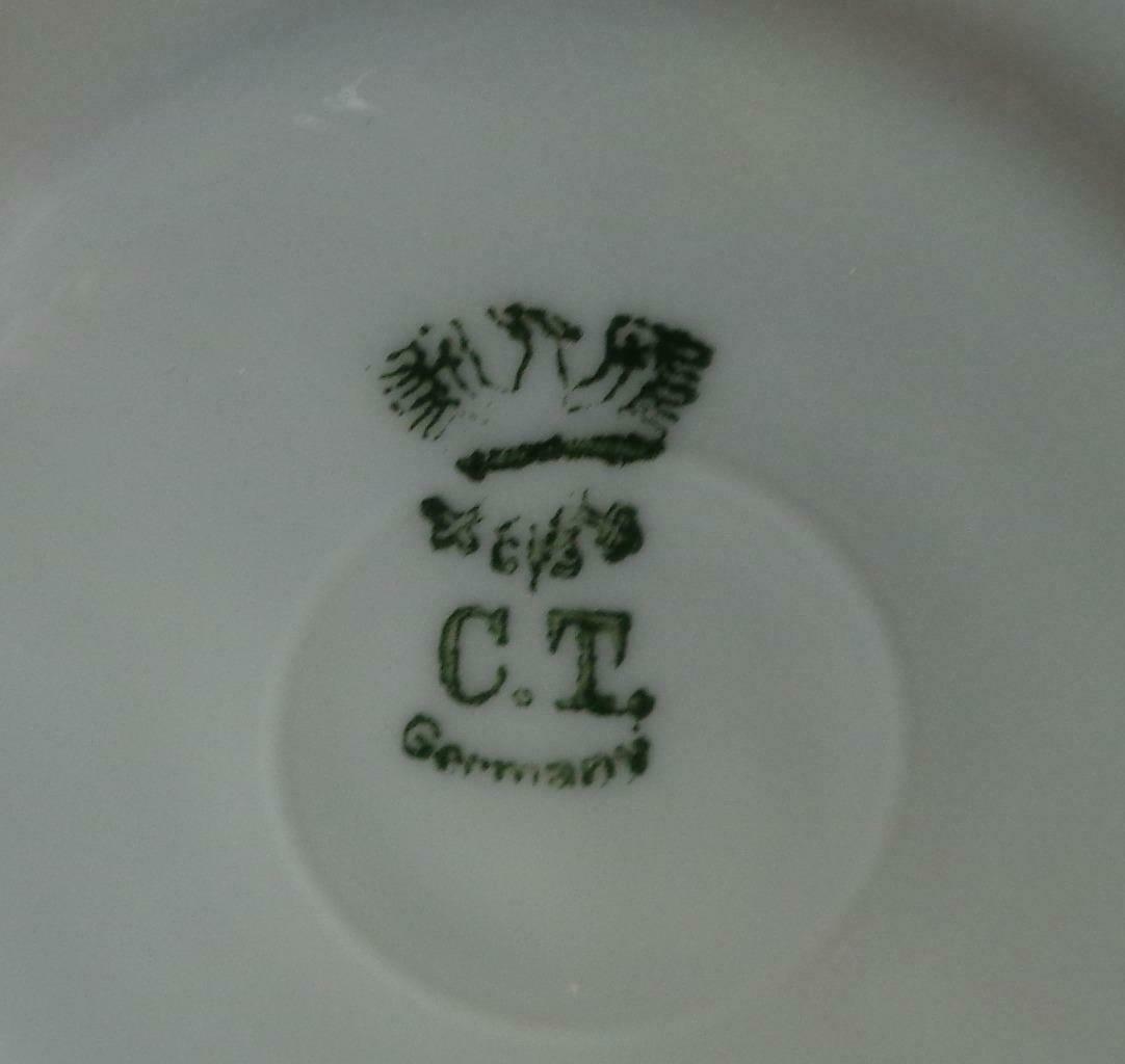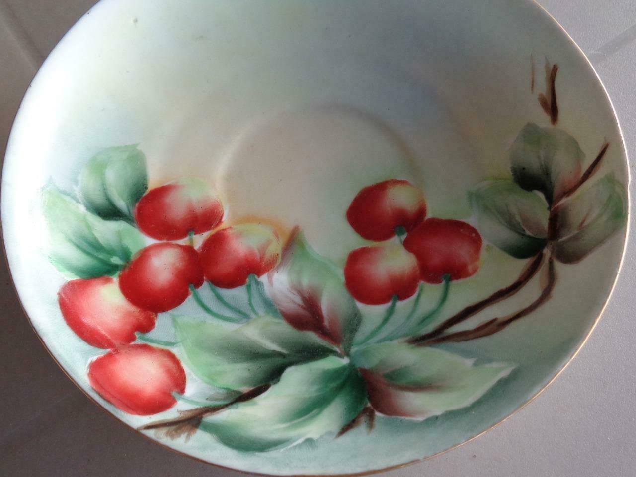 Offered here is this very nice vintage China saucer marked CT Germany on the back stamp. It has a lovely hand-painted pattern of cherries on it and is in very good condition with no chips or cracks. The Hand-painted design on the saucer is also in good condition, however, it does have some very small areas of wear. The saucer is 5.5" in diameter. I am unsure of its exact age. It is a lovely vintage China saucer from Germany and a must-have for any antique china collection.