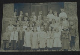 You are bidding on this nice vintage black and white photo, on the original photographers card. The photo and card are both in very good condition, with only some light wear and scuffs on the cover and tissue within, and some small tears along the edges of the folder. The photo has been well protected and is in very good condition. I am unsure of the age of the photo, but I would guess late 1880s to very early 1890s. The photo itself is 6โ top to bottom by 6.75โ side to side. The card is 8โ top to bottom, 10โ side to side. This is a very nice antique cabinet card photograph of a very nice looking group of children with their teachers.