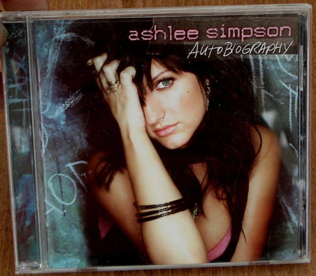 Ashlee Simpson, Autobiography. The CD is in good condition, and plays alright, but there are a lot of surface scratches on it, and the case is a bit worn as well, and is cracked in a few places, and the paper cover is stained and cut, and it is missing one hinge. It is a nice used CD, and features the songs.