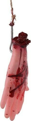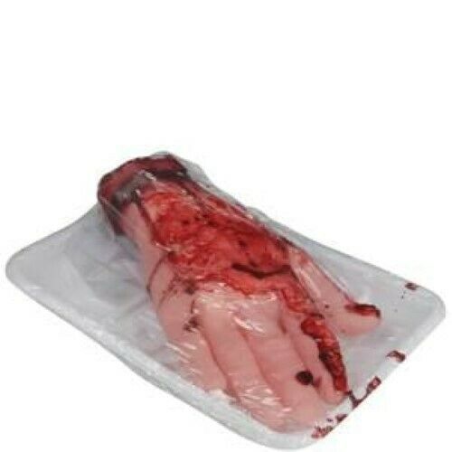 Hang this bloody hand on the porch or just place it on the table to prepare your next meal! Use your imagination! Great for halloween.