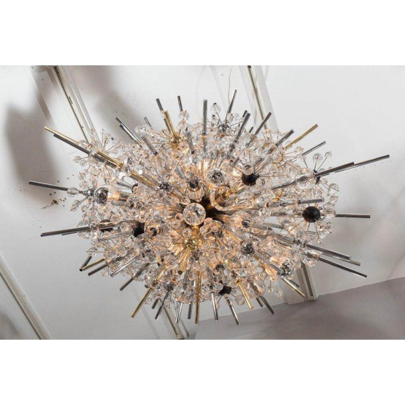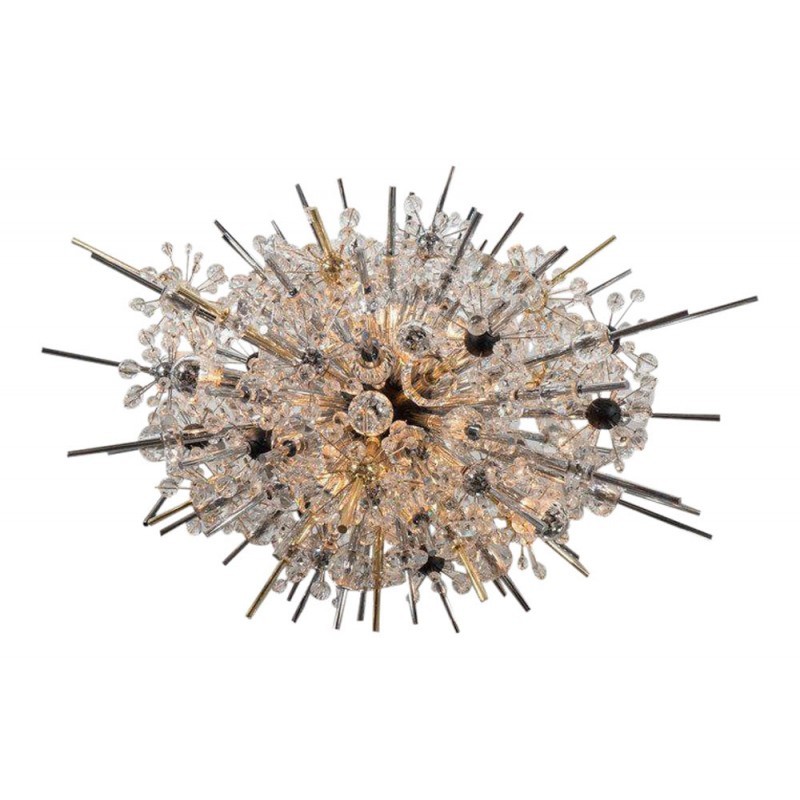 This design was inspired by women’s love of jewelry and the same essential final touch that a statement jewelry piece brings any outfit, this design will do the same for your home. Crystal sputnik with a polished nickel frame and ebonized spheres. Its finish combination draws attention but also works well with many different color schemes. Stand out from the crowd and illuminate your place with this one of a kind chandelier. The very intricate design perfects the piece and stands out. Its unique construction highlights its stunning look without compromising quality and function. Crystal woven together like fabric hung from a two-dimensional frame that carries its weight.