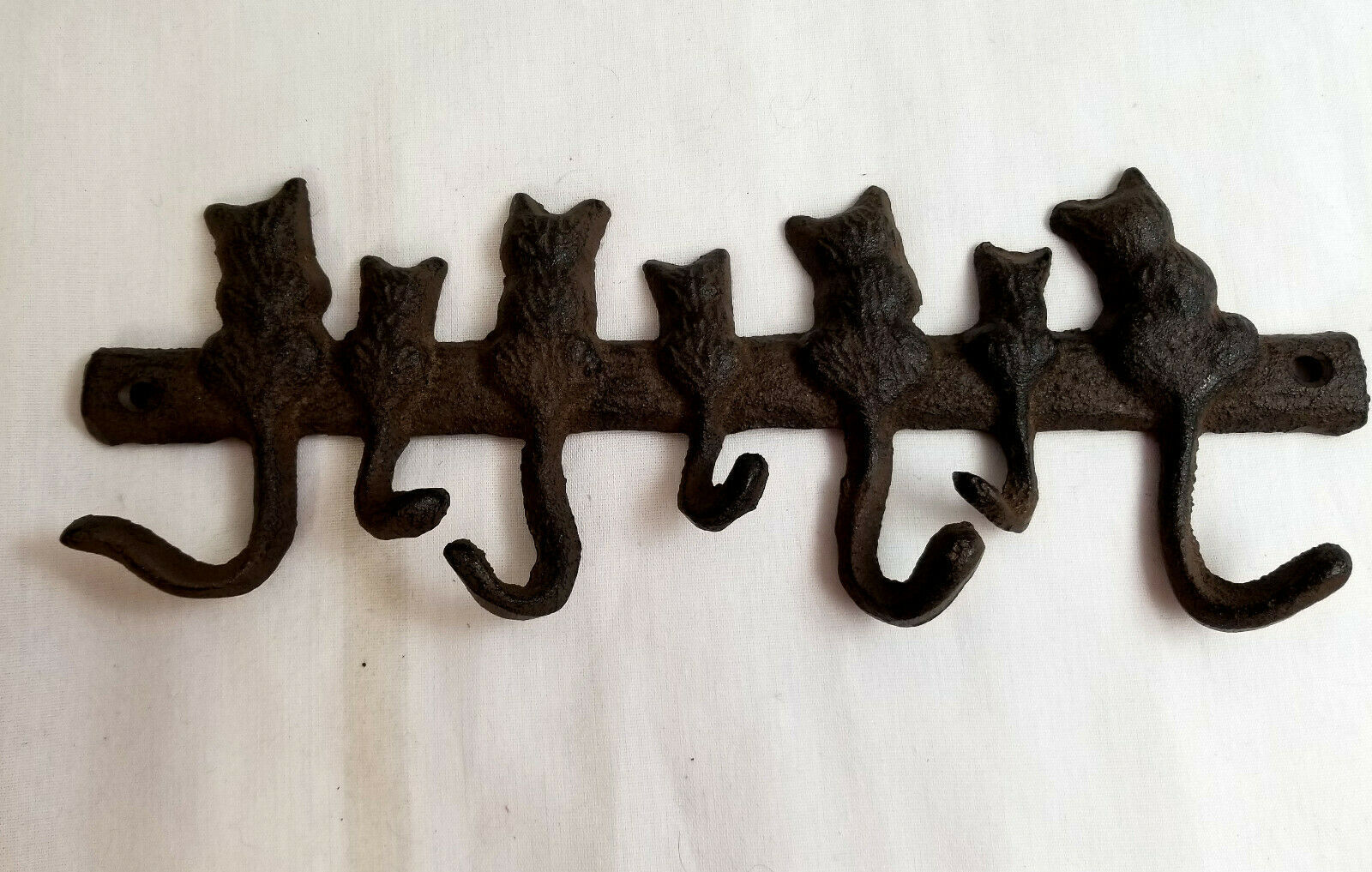 7 Kitty Cats Kitten Cast Iron Wall Hanger Hook Rack Decorative Black 10"