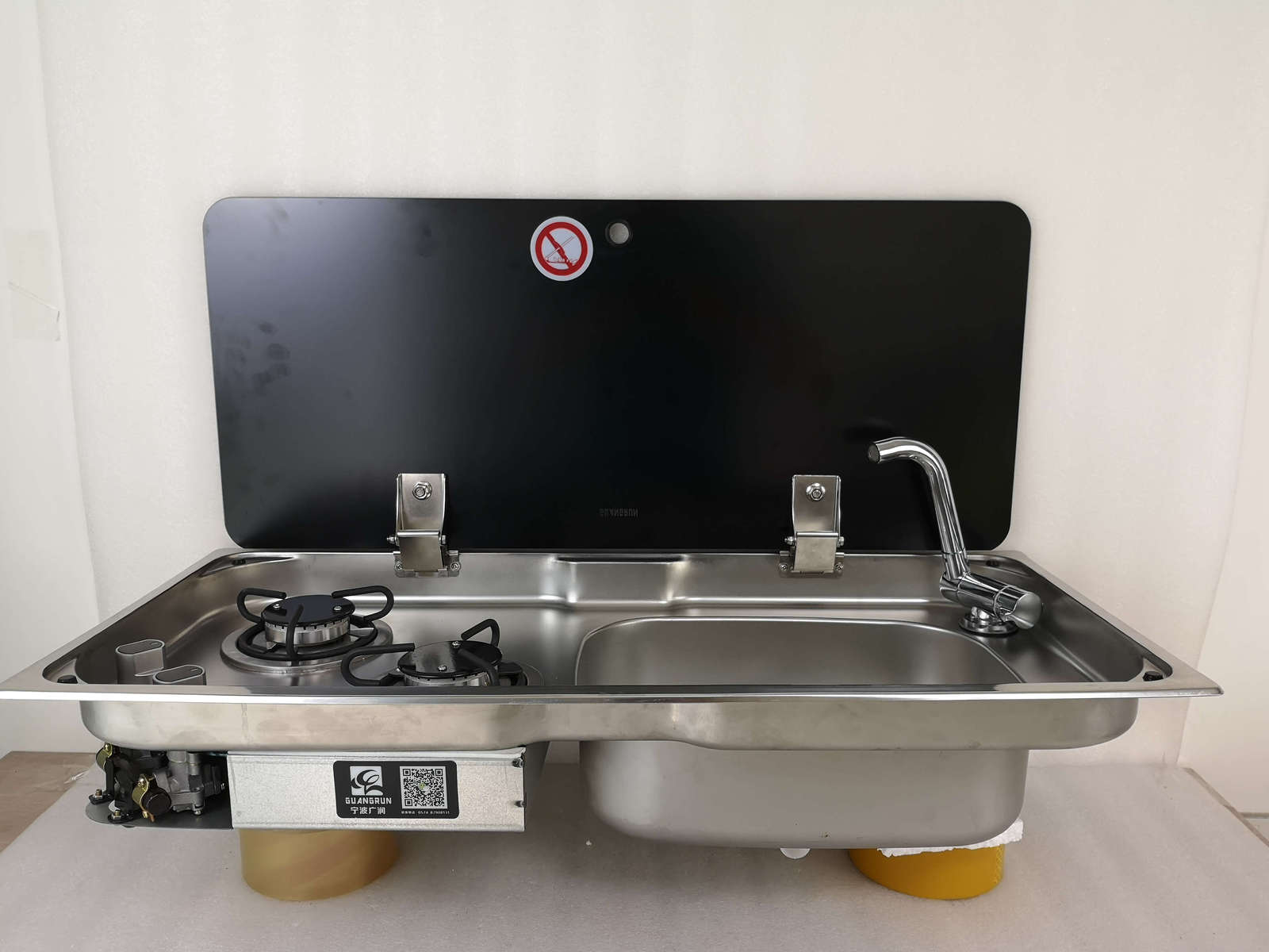 2 Burner Gas Stove Sink Combo with Glass Lid 2*1.8KW 775*365*150/120mm GR-904RS Boat RV