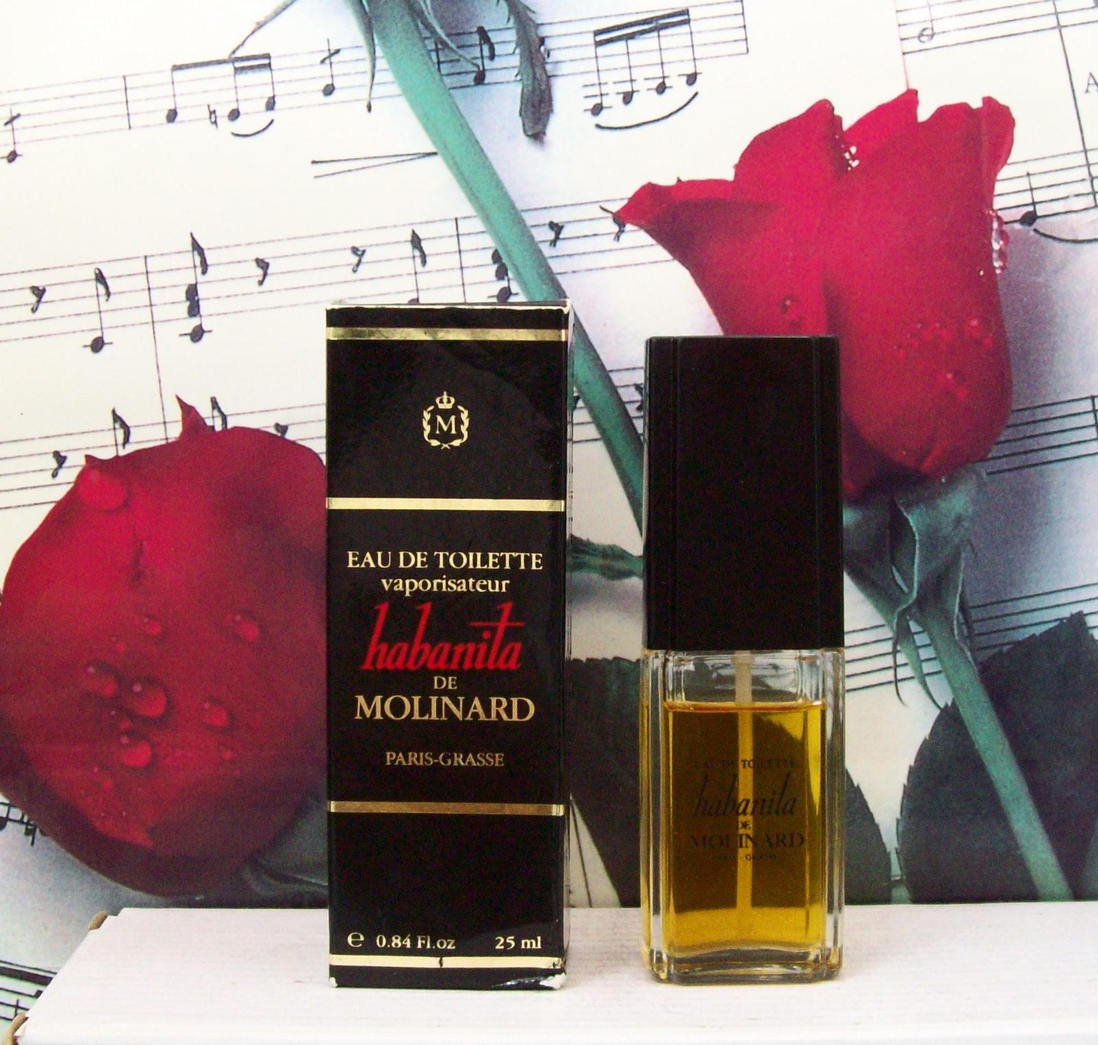 Habanita Perfume by Molinard, Habanita, introduced in 1924, is a classic, sexy perfume for seductive nights. Its dangerous blend of feminine scents beguiles all those who dare approach. Juicy peach, bergamot, raspberry, and orange blossom are the delicious top notes. Mouthwatering and bright, they reveal a subtle undertone of oriental spice. Jasmine, heliotrope, rose, and ylang-ylang are the heart notes. Sweet and refreshing, they offer a full bloom of elegant, floral scents. The base notes are leather, musk, vanilla, oakmoss, and cedar. Provocative and inviting, they finish the perfume with a heavenly blend of earthy and sweet. Wear this perfume to capture the attention of your current flame.