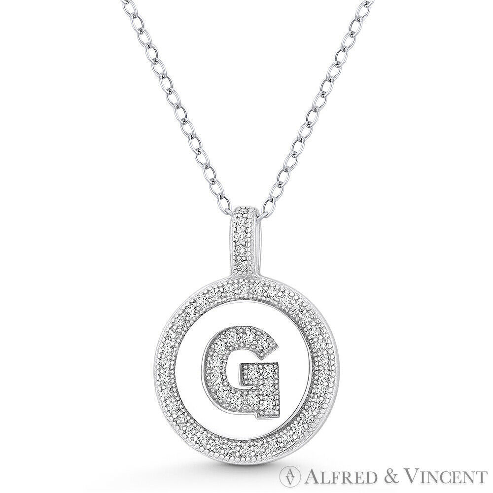 Initial Letter "G" CZ Crystal 925 Sterling Silver Rhodium 20x15mm Circle Pendant