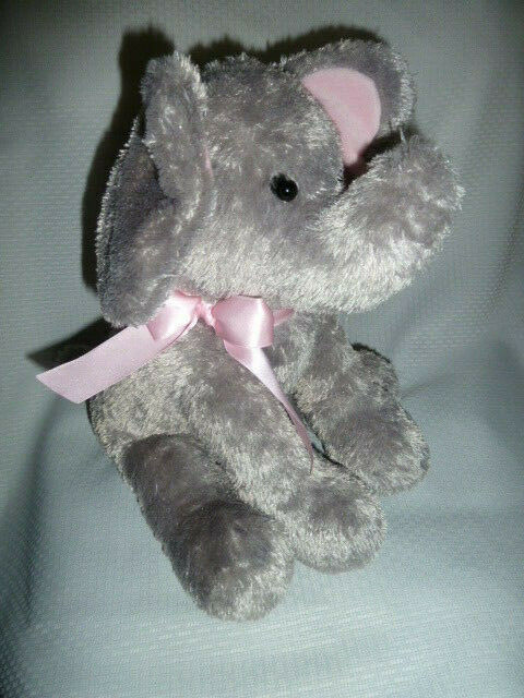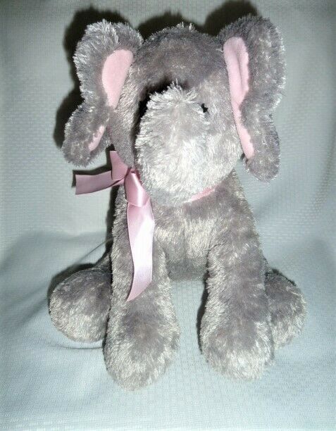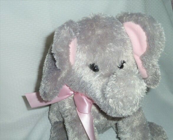 GUND ELEPHANT grey take along #4060481 plush pink bow pink ears