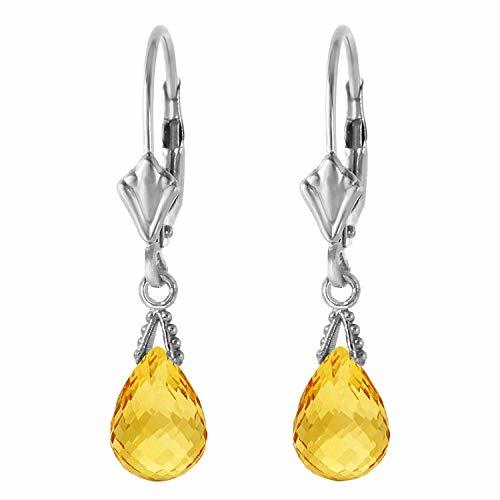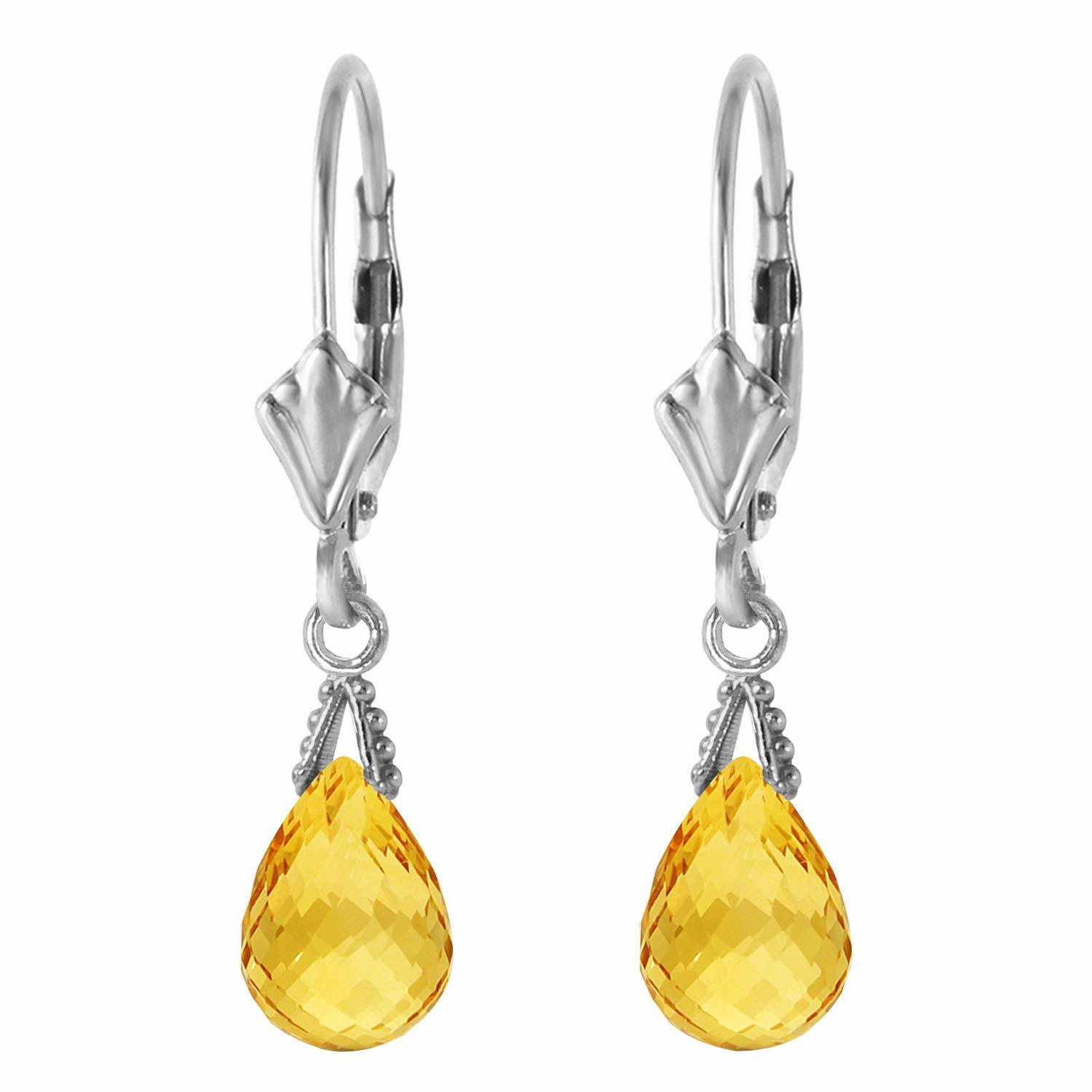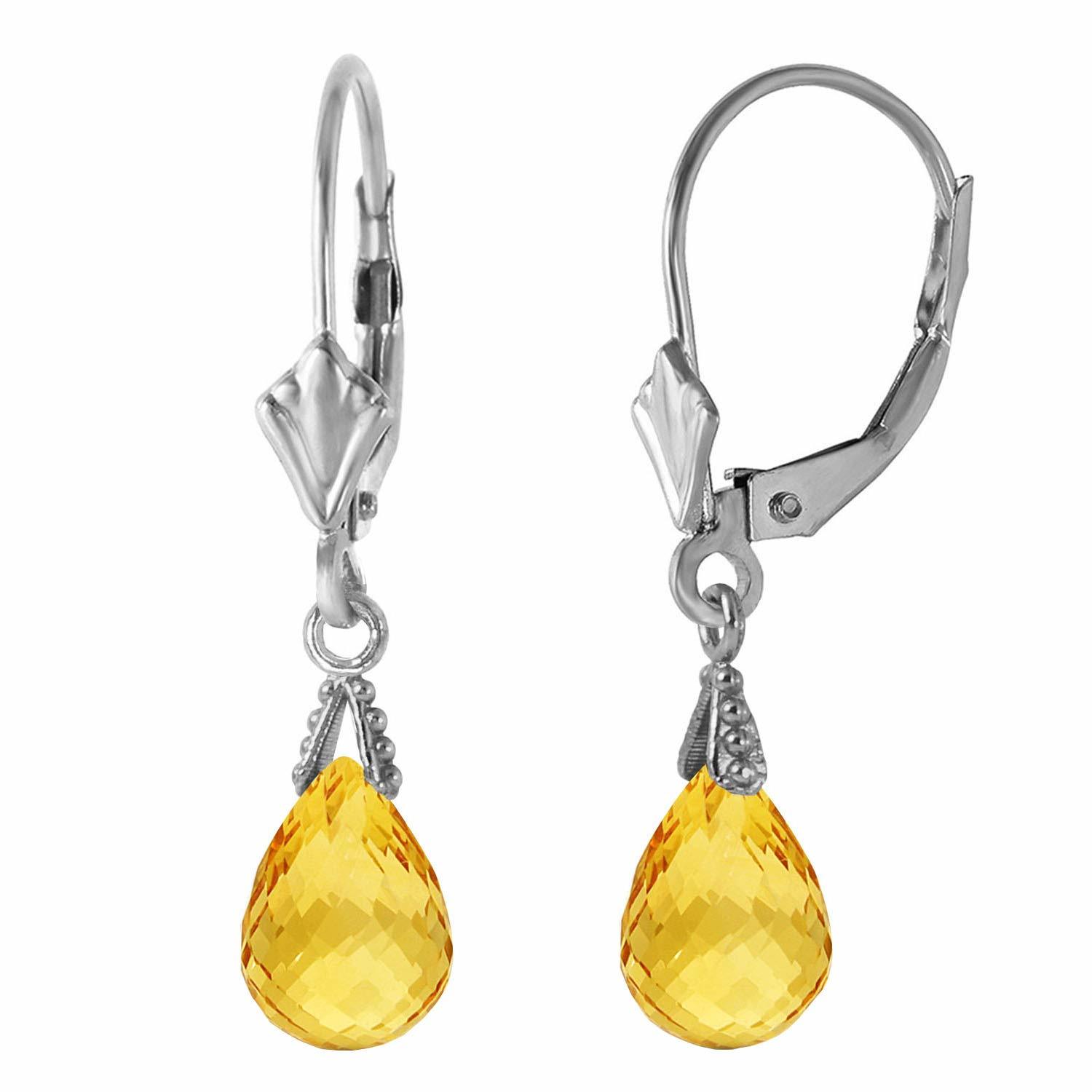 2.5 Carat 14k Solid White Gold Leverback Earrings Briolette Citrine