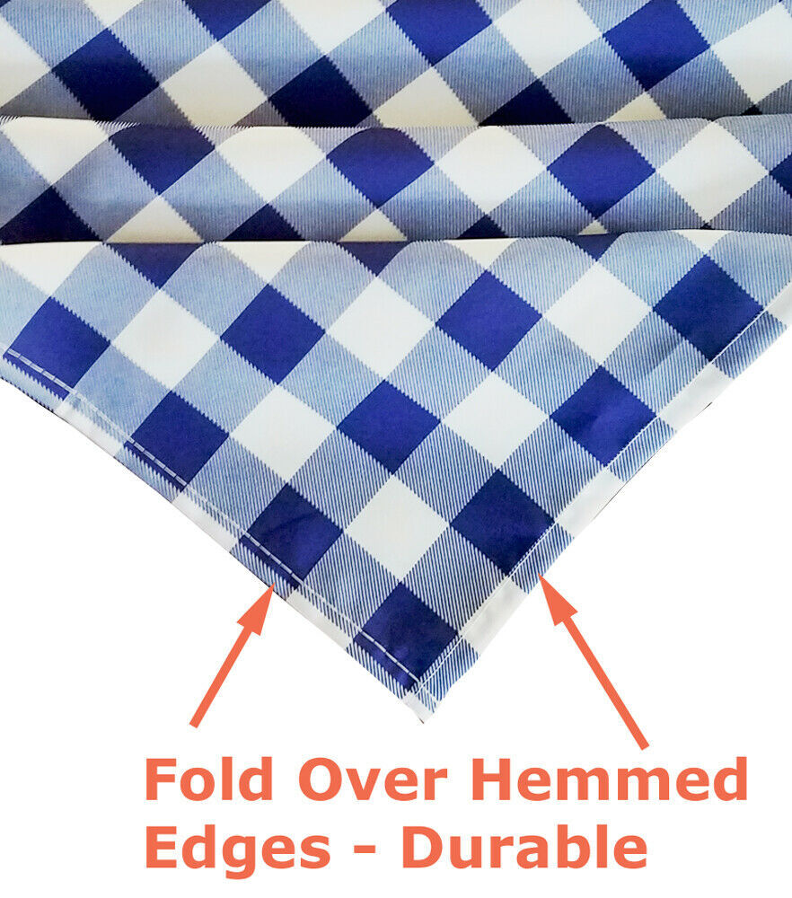 Product Description This seamless high-quality one-piece design classic checkered tablecloth allows you to add a touch of class and elegance to any special event, and create an inviting ambiance for your guests. The gorgeous checker table cloths appears a sense of classic style, great for decorating your dining room, or any indoor outdoor use. It can be used for layering under table runners, lace toppers, overlays, etc. Perfect for special occasions and everyday dining. The tablecloth is made of 100% heavy duty polyester microfiber fabric, will last for many years. Multiple colors are available.