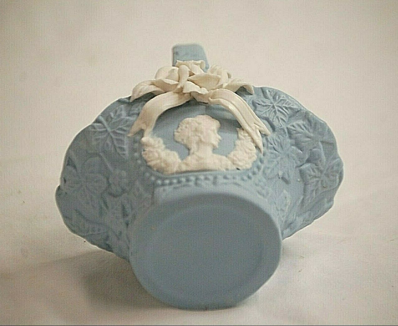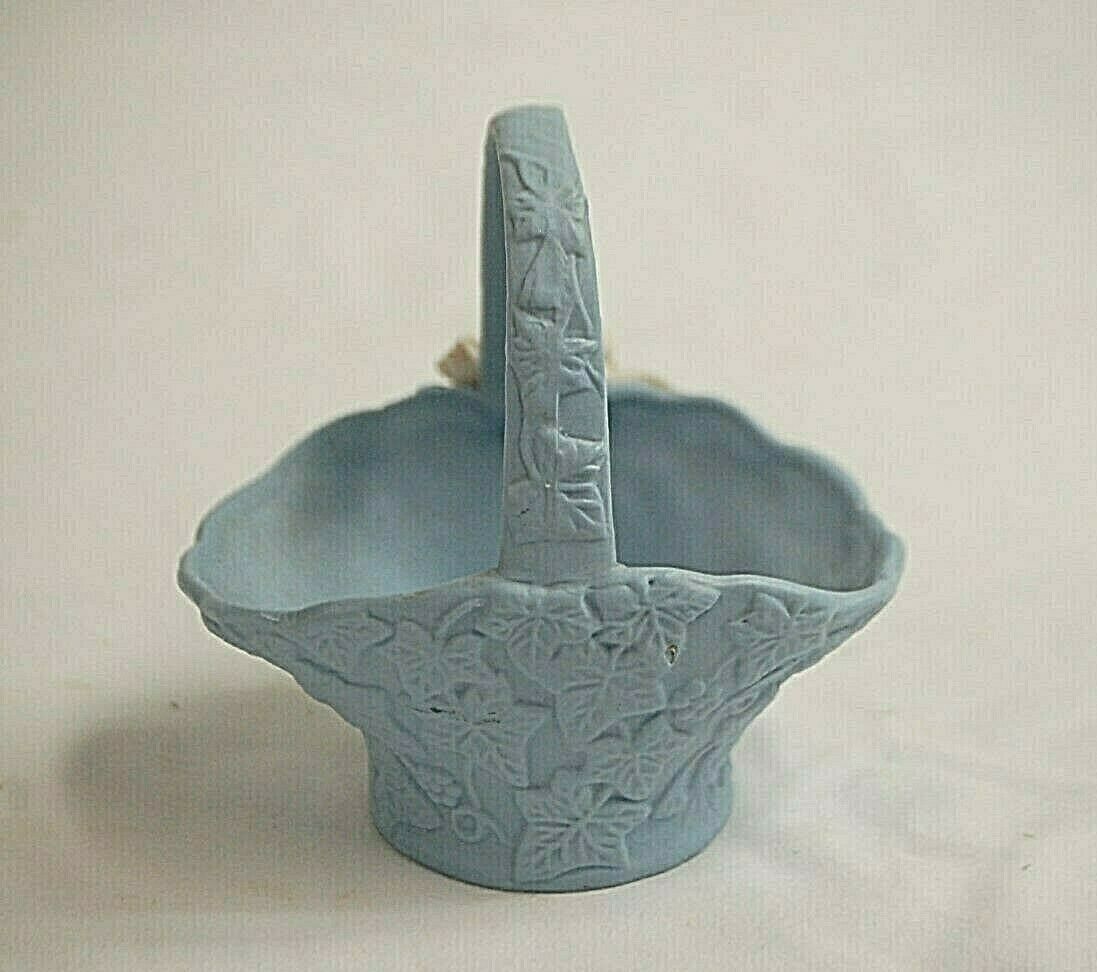 Cameo Style Lady Handled Basket Pale Blue & White w Embossed Ivy Floral