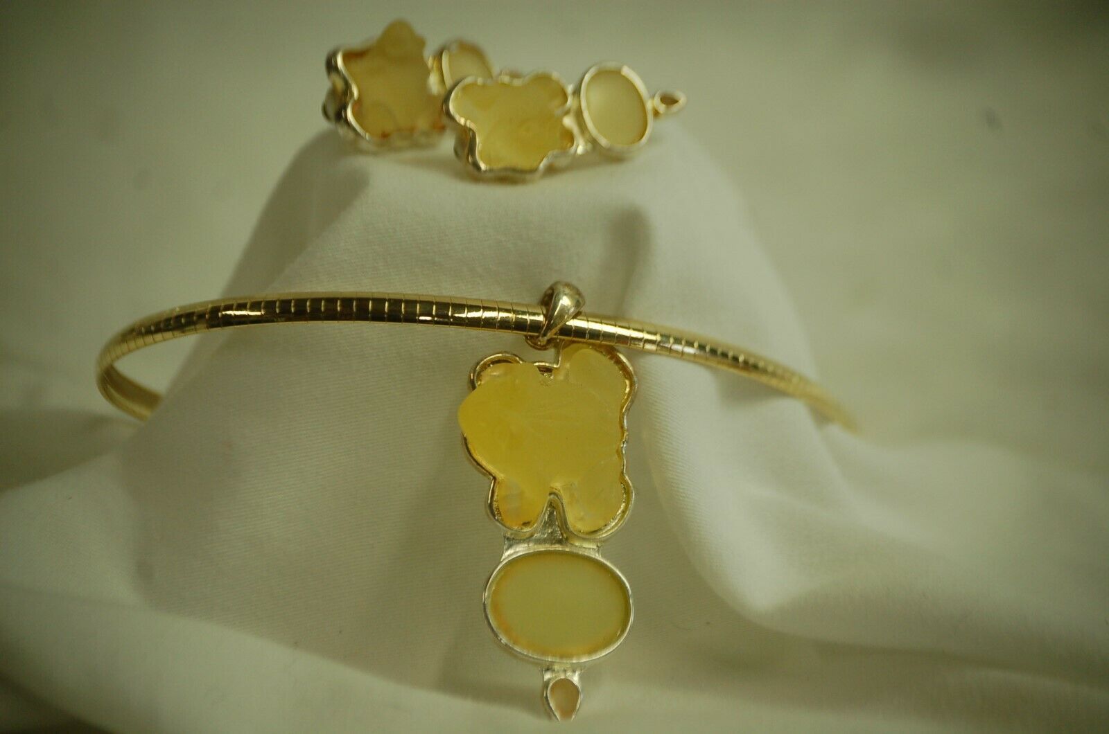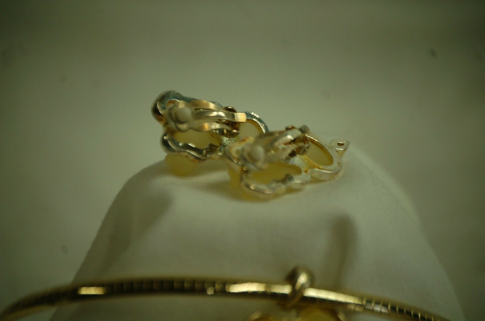 Costume Jewelry Set Gold Tone Resin Frogs Clip on Earrings & Choker Necklace