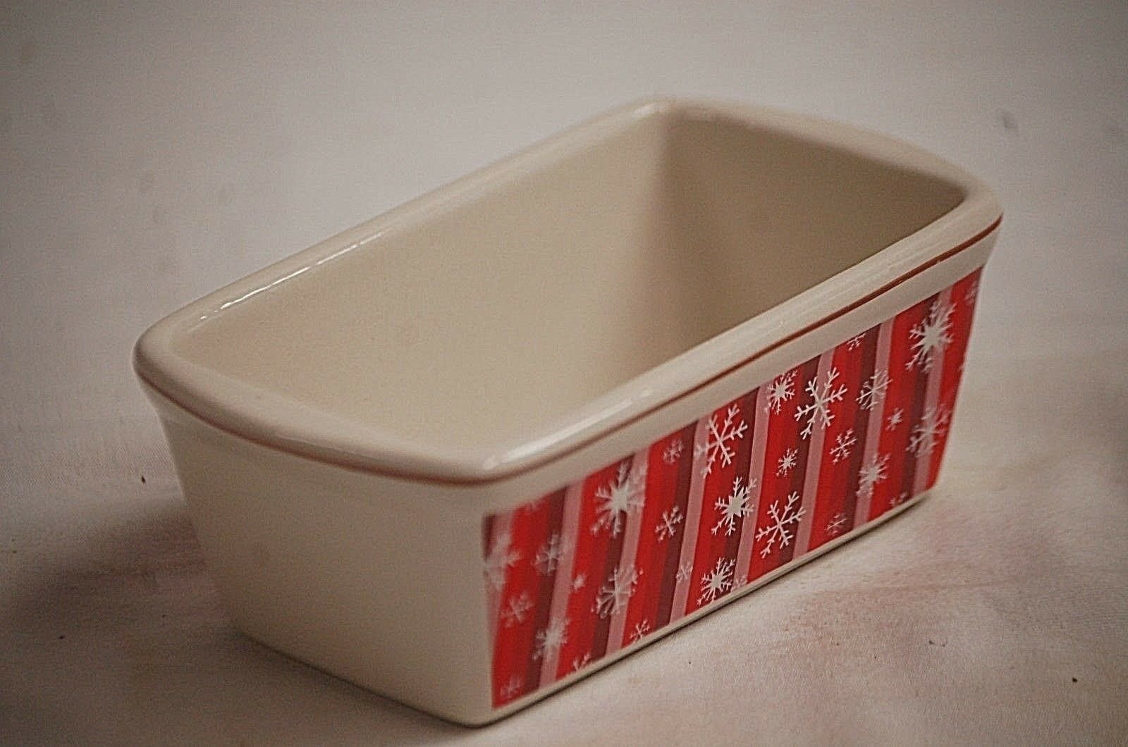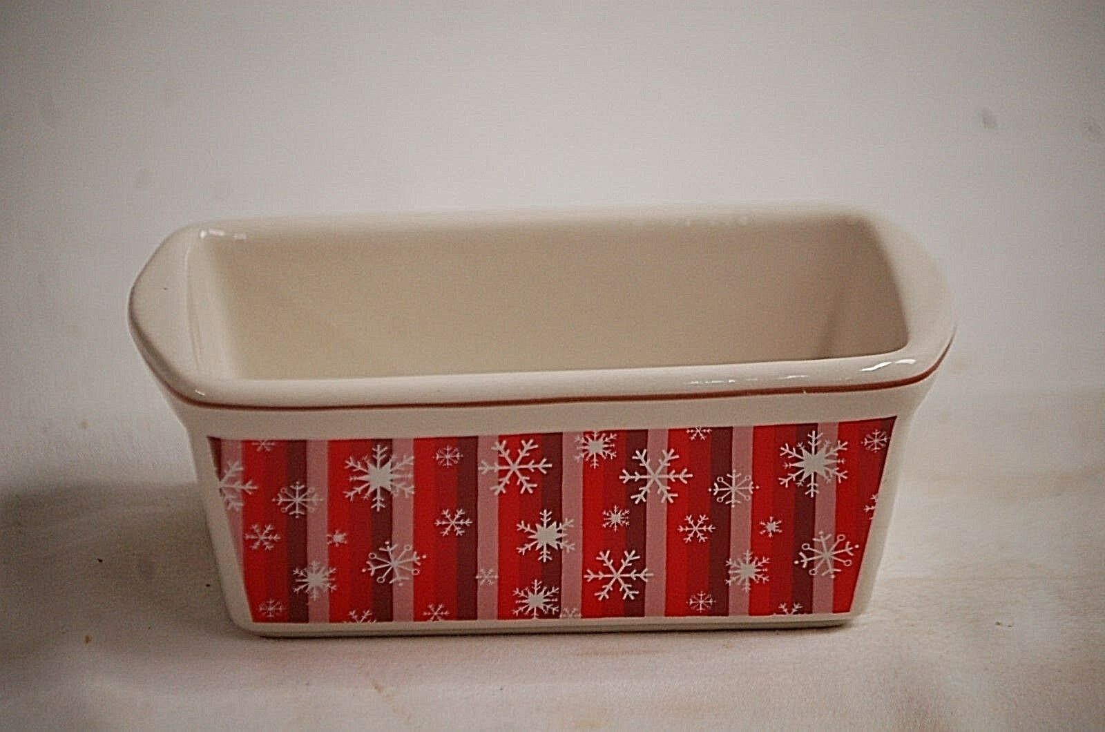 Garden Ridge Stoneware Mini Loaf Pan White Snowflakes Christmas Holiday Bakeware