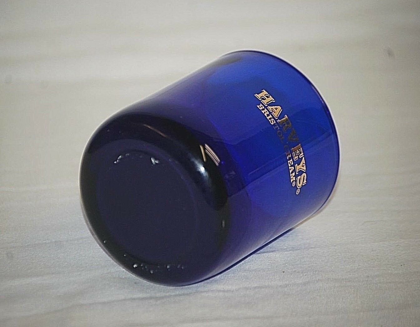 Harveys Bristol Cream Cobalt Blue Old Fashioned Glass w Gold Logo Barware Libbey