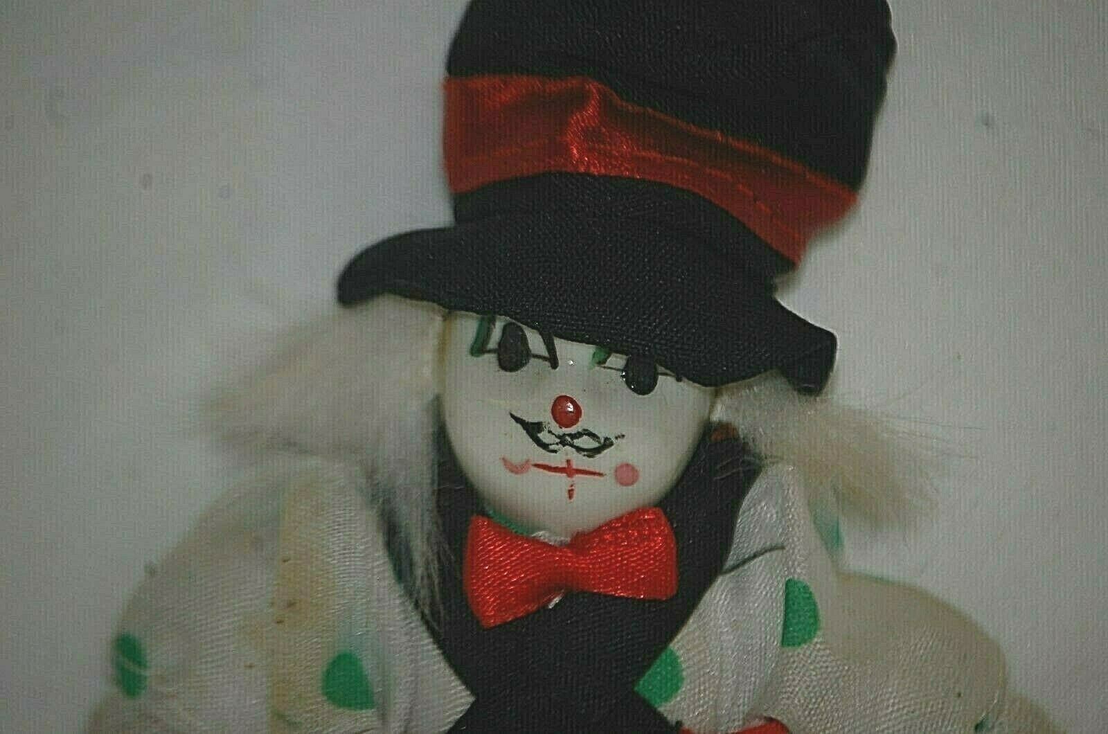 Mardi Gras Jester Clown Harlequin Doll Porcelain Head Soft Body Green Polka Dots