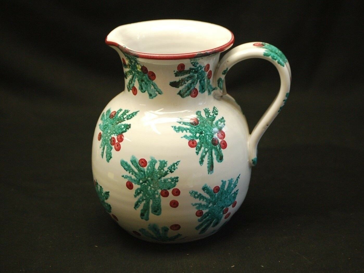 Old Dayton Hudson Ceramic Art Pottery Italy White Pitcher w Holly Berries Motif