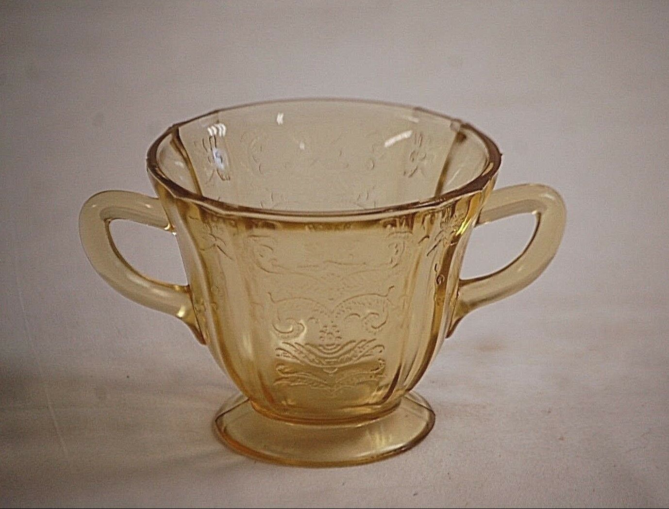 Old Vintage 1930's Yellow Depression Open Footed Sugar Bowl Madrid Federal Glass