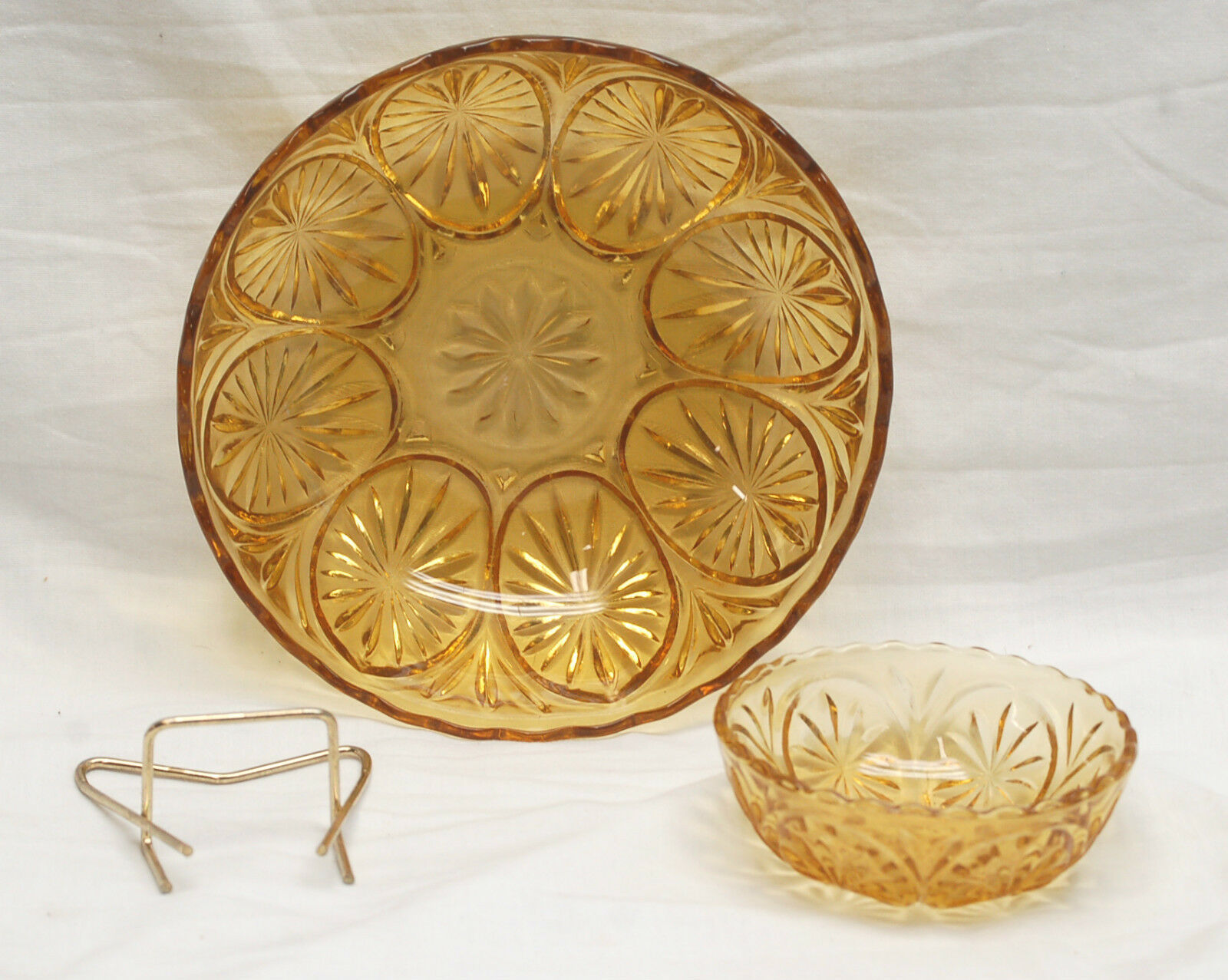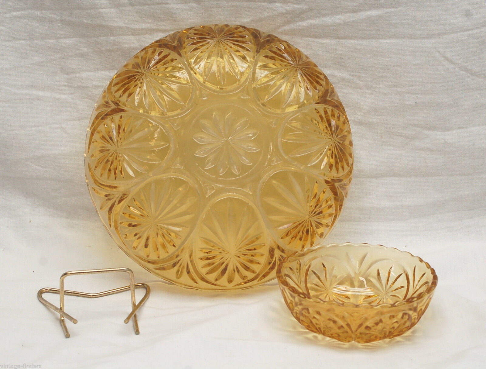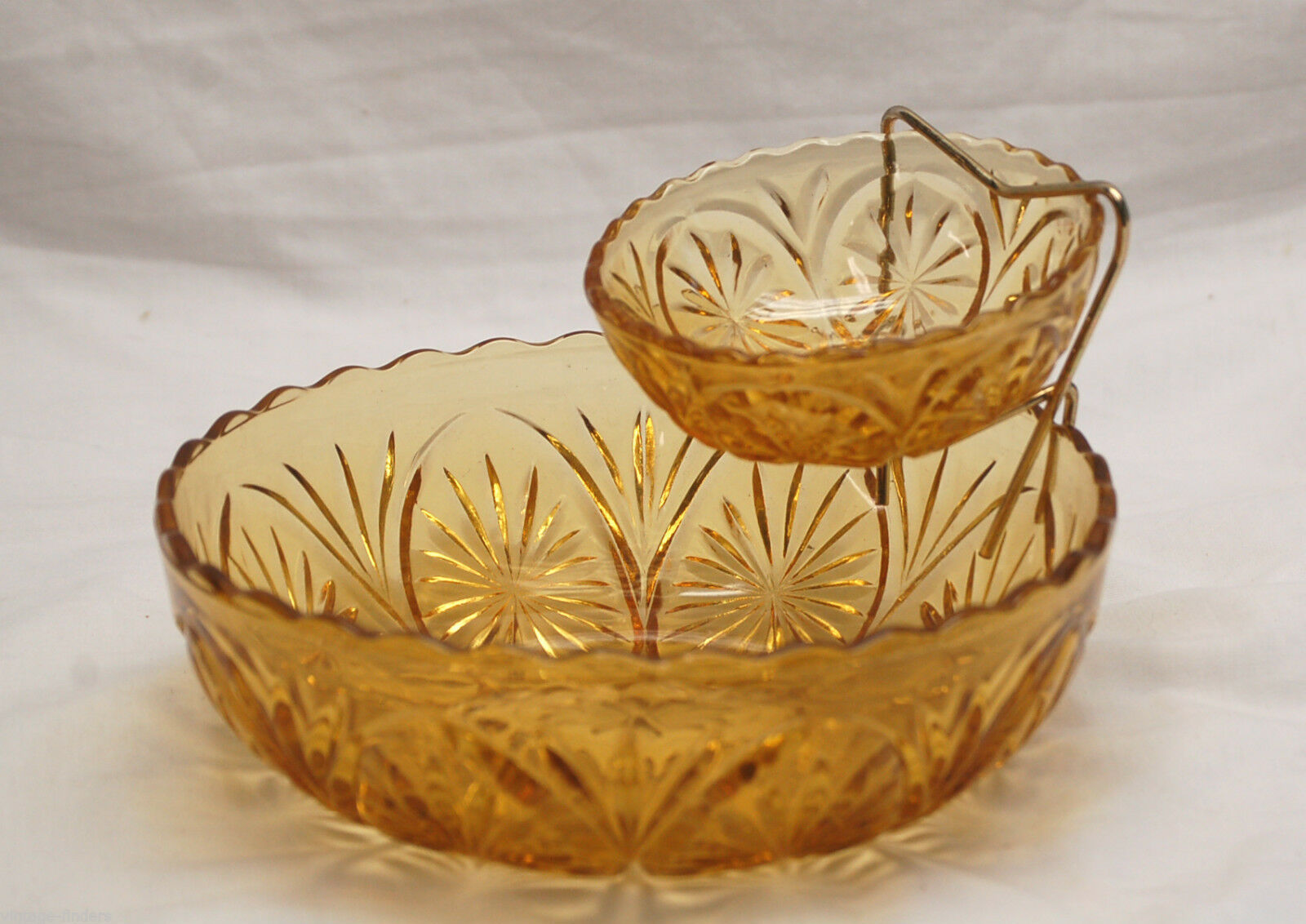Old Vintage Amber Gold Glass Chip & Dip Bowl Set Stars & Cameo by Anchor Hocking
