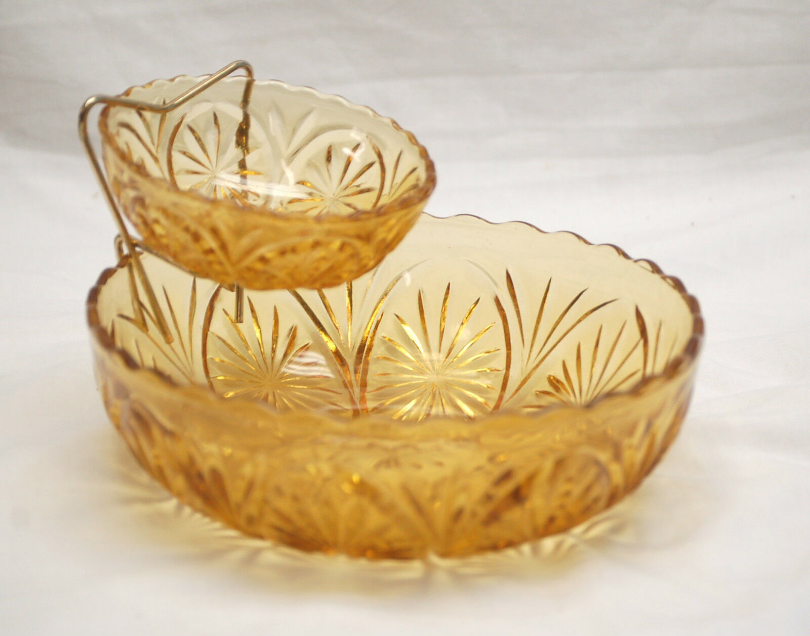 Amber Gold Glass Chip Dip Bowl Set