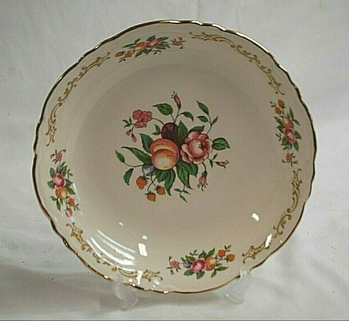 Old Vintage Cereal Soup Bowl Homer Laughlin Fruit Floral Pattern Scalloped USA