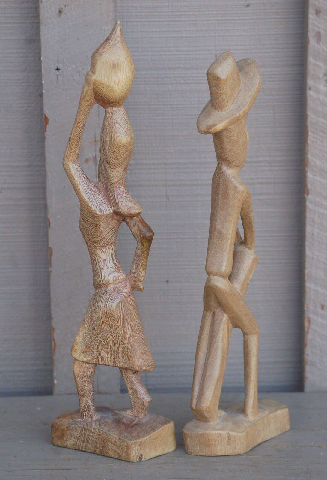 Old Vintage Handcarved Native Man & Woman Wooden Figurines / Sculptures Decor