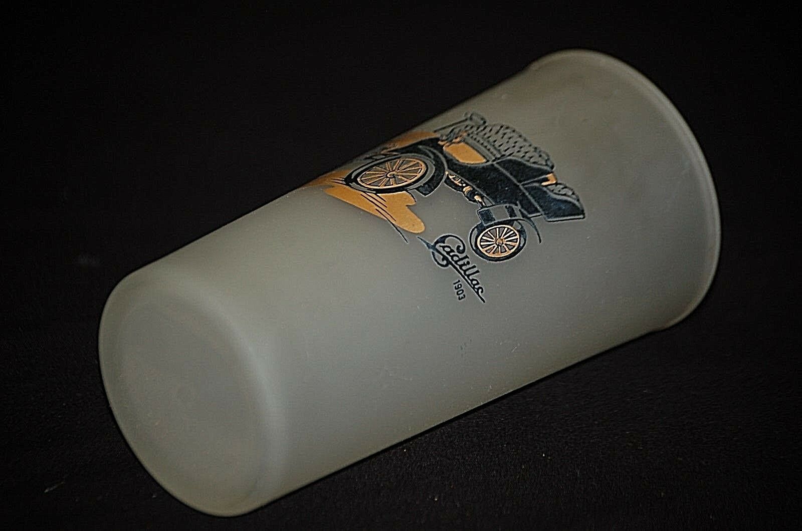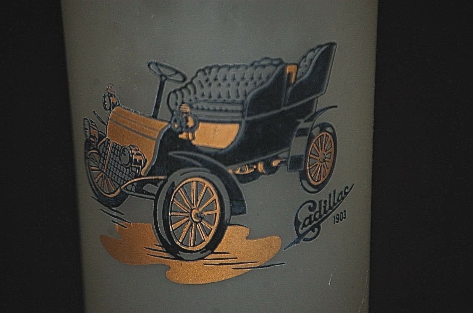 Old Vintage Hazel Atlas Frosted Highball Glasses Antique Car Cadillac 1903 MCM