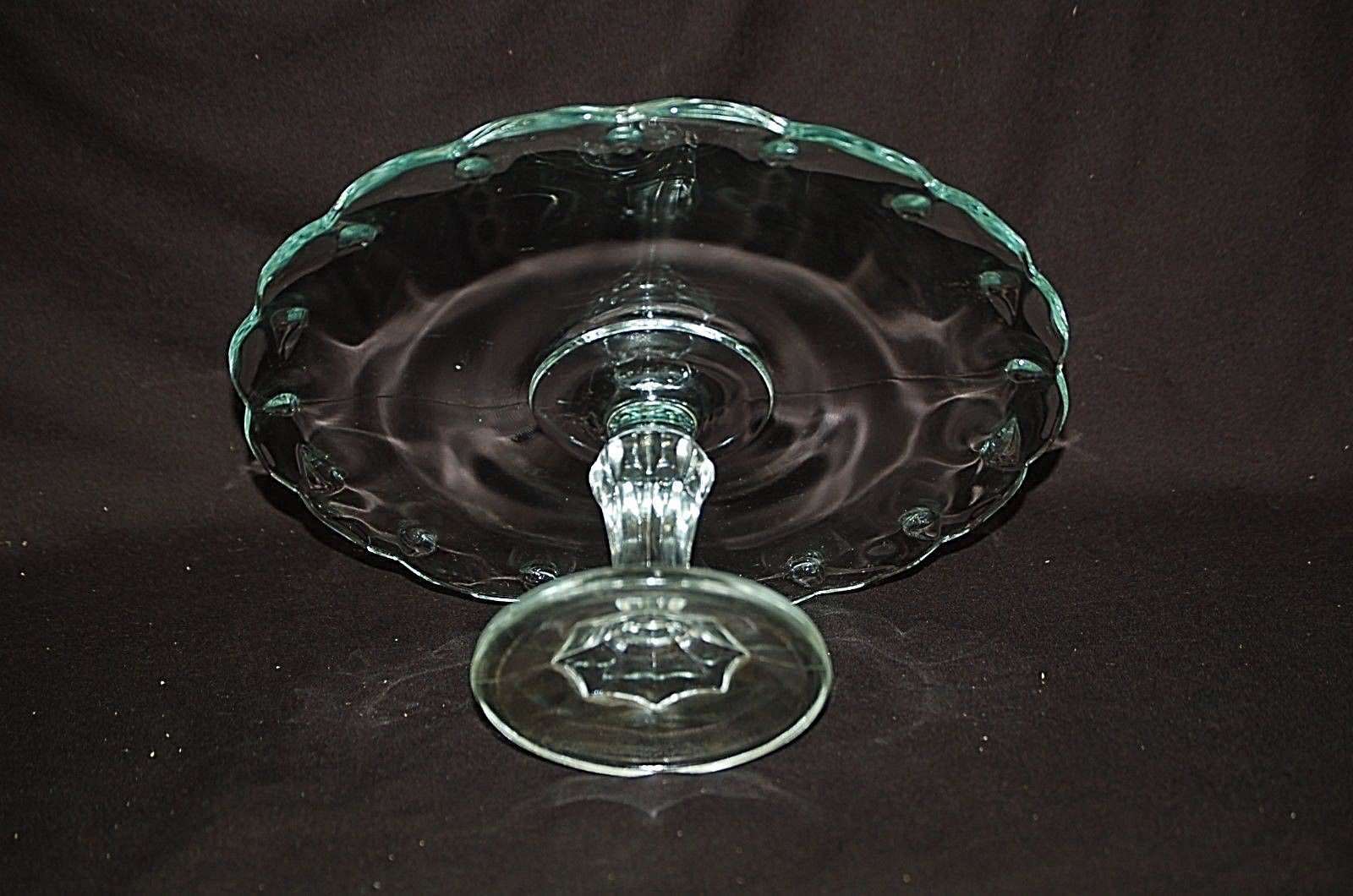 Old Vintage Indiana Glass Pedestal Cup Cake Plate w Teardrop Scalloped Edge MCM