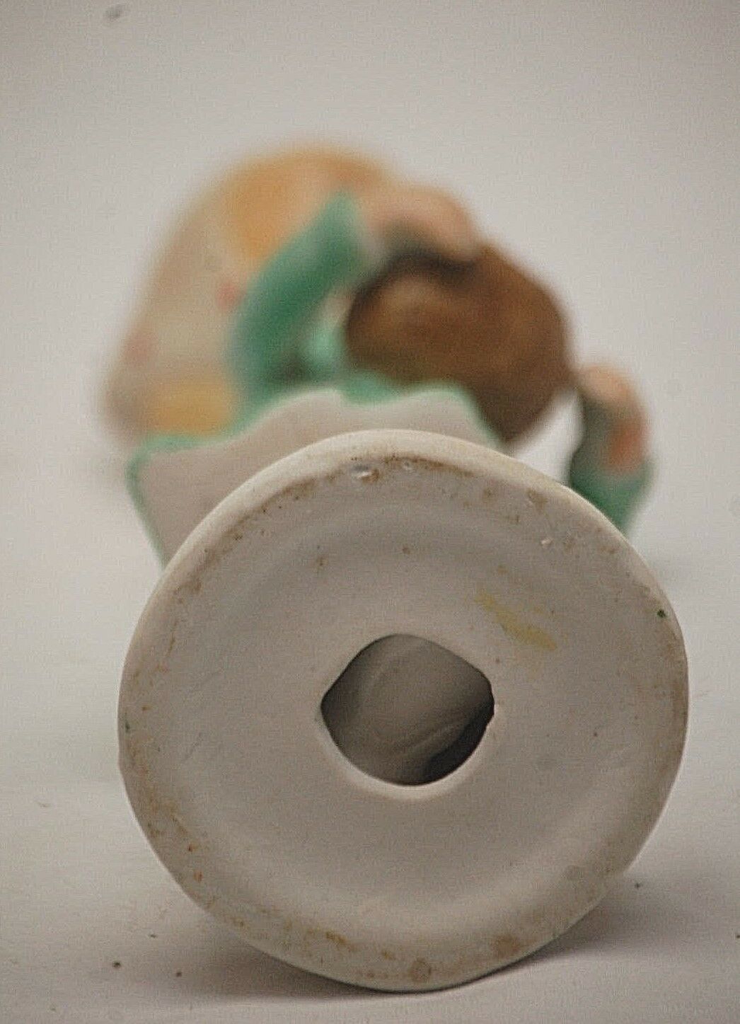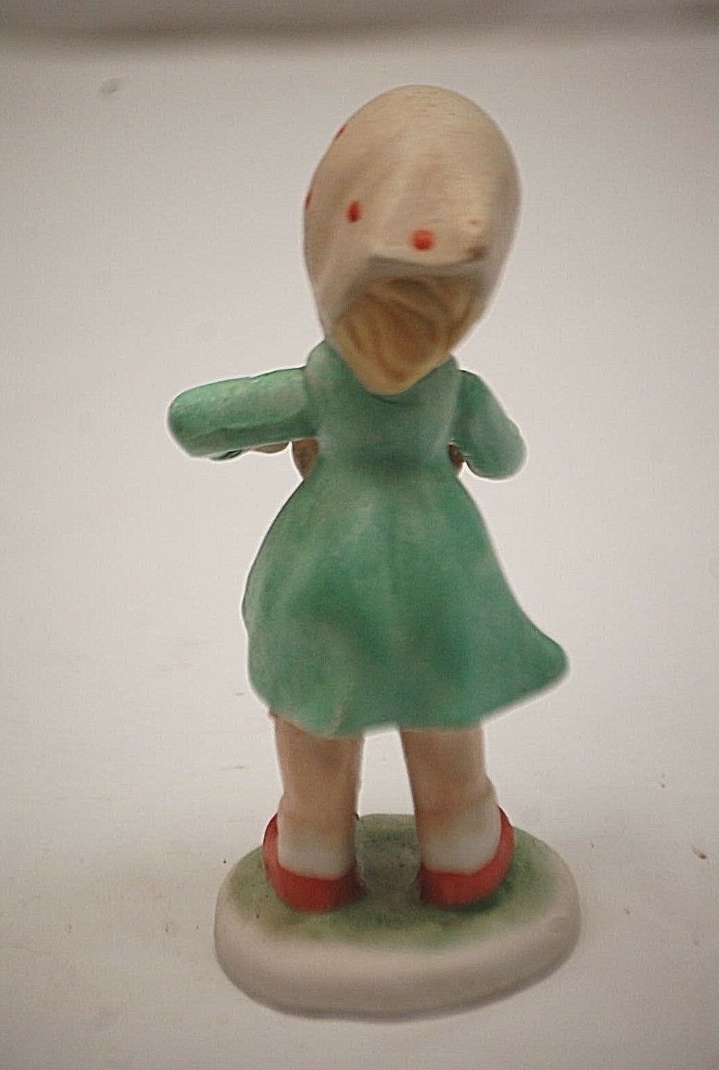 Old Vintage Little Girl w Basket Apples Red Polka Dot Head Scarf Bisque Figurine