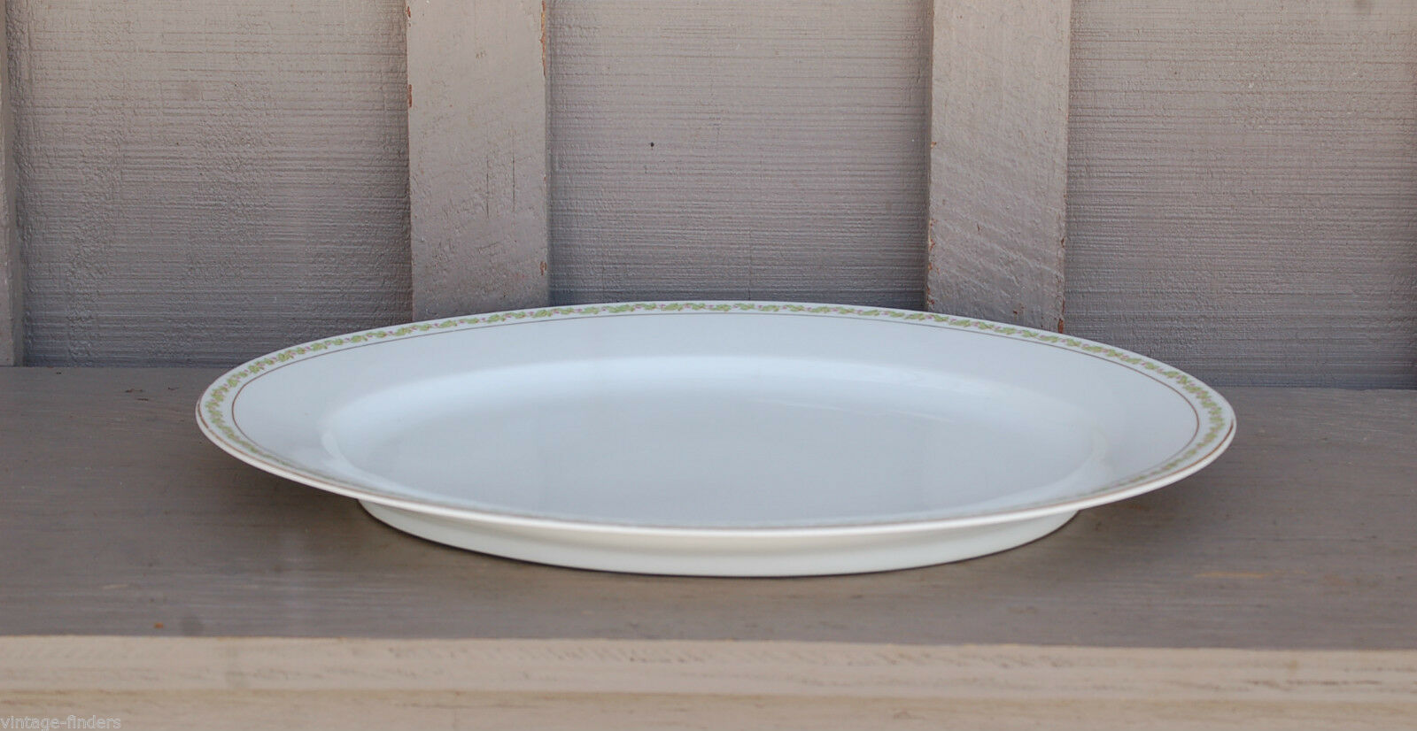 Old Vintage M & Z 14-1/2" Oval Serving Platter Green Leaves & Berries Austria
