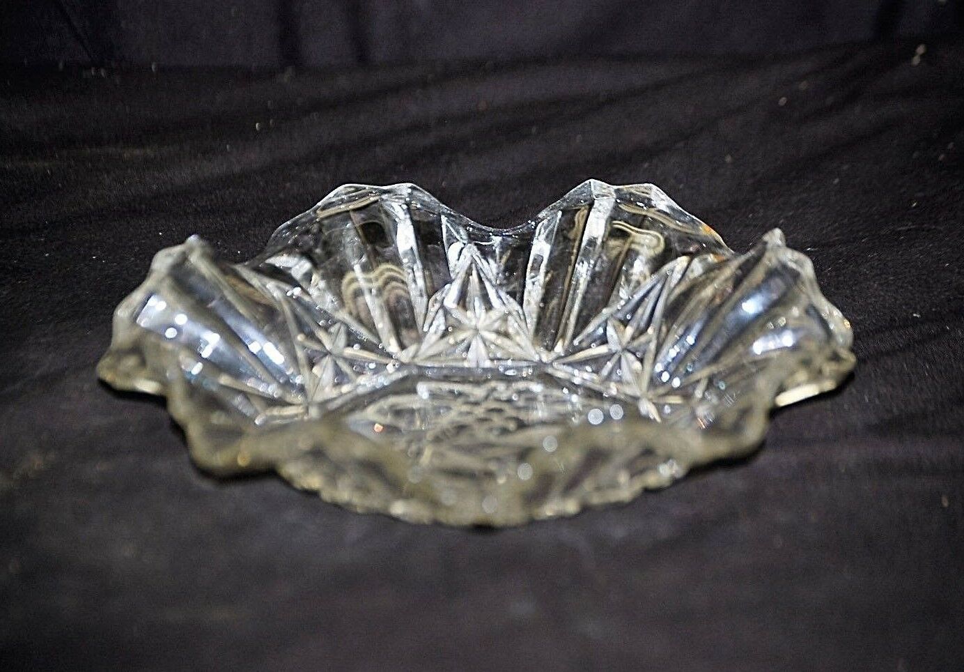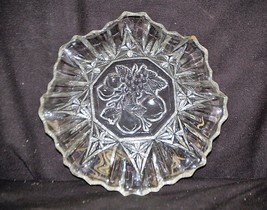 Old Vintage Pioneer Clear Federal Glass 7-1/2" Crimped Round Bowl Fruit Design