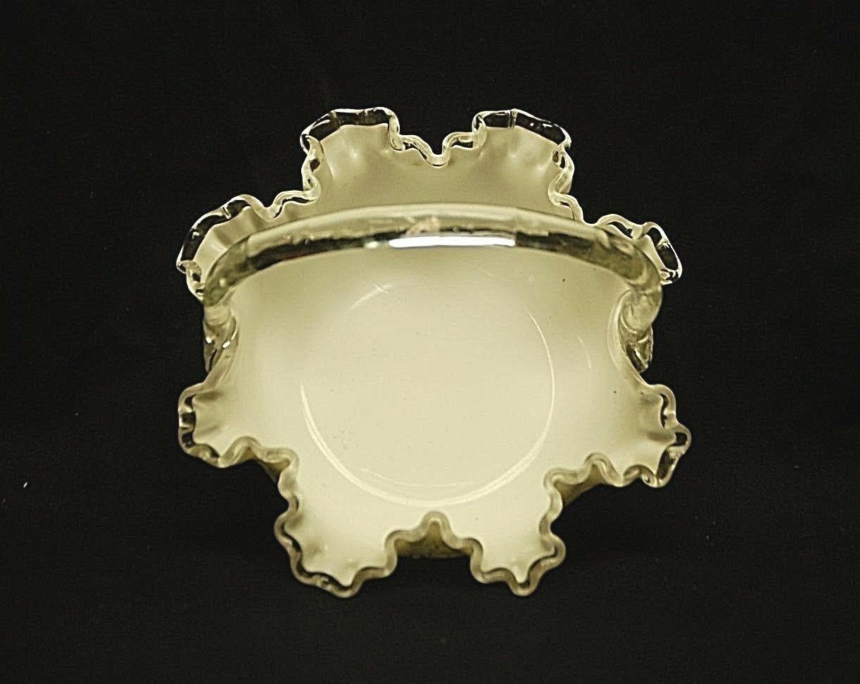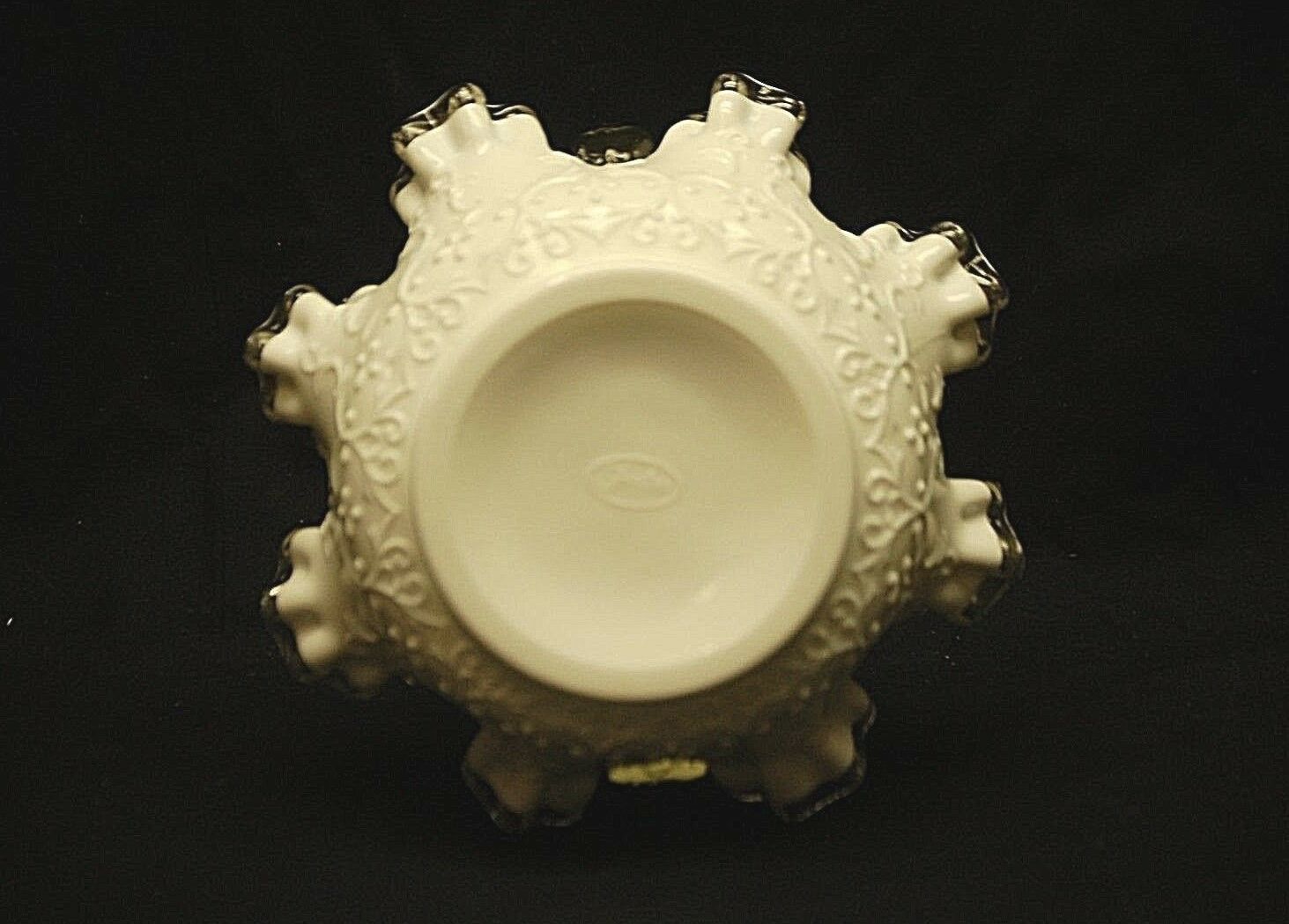 Old Vintage Silver Crest Spanish Lace Fenton 8" Basket Lace Design on Milk Glass