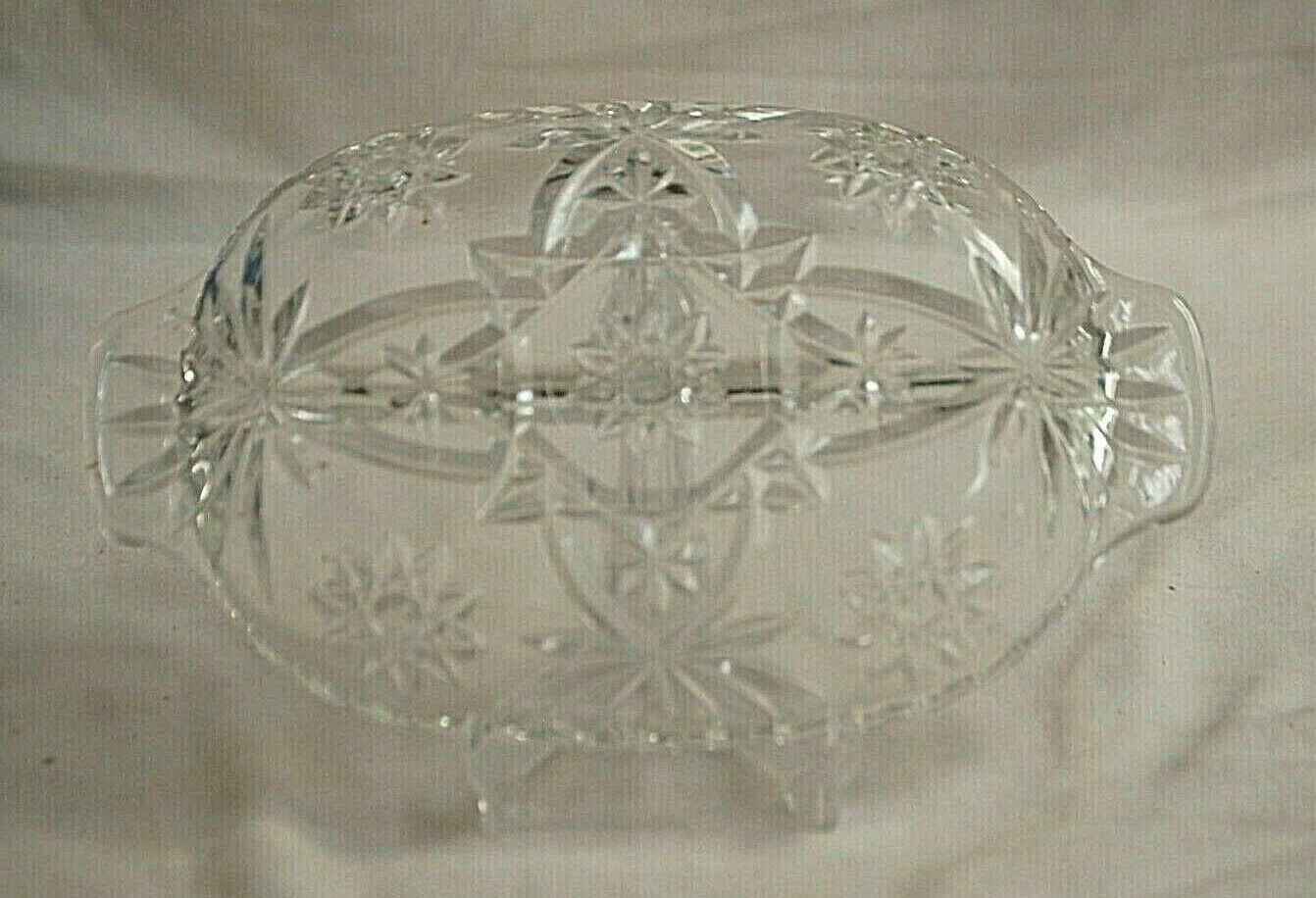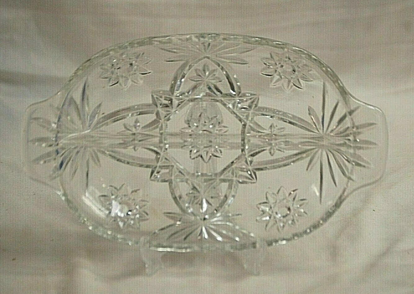 Prescut Clear EAPC Anchor Hocking 10" 2 Part Relish Dish Star & Fan Designs MCM