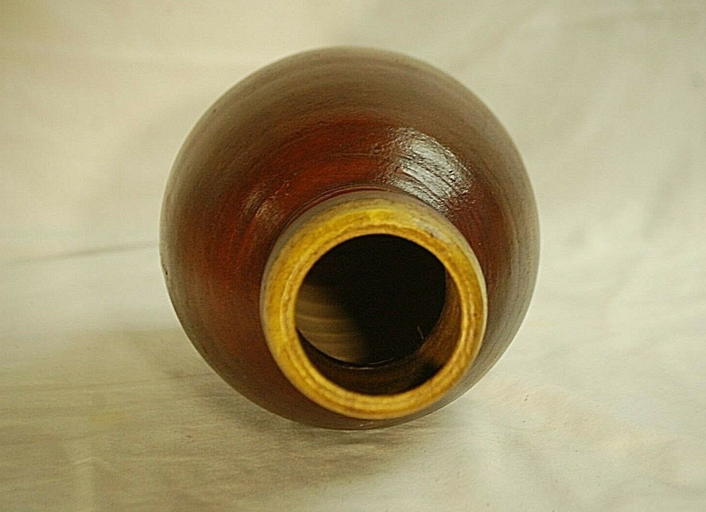 Primitive Style Stoneware Studio Art Pottery Crock Vase Earthtones w Yellow Rim