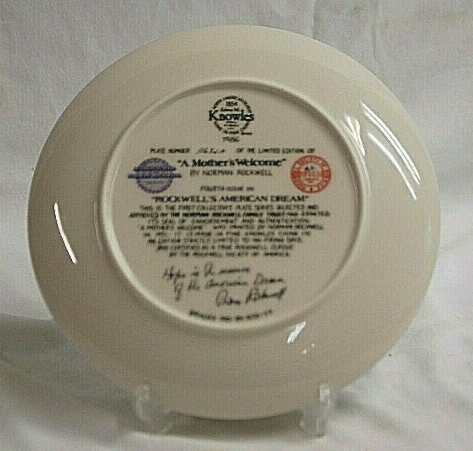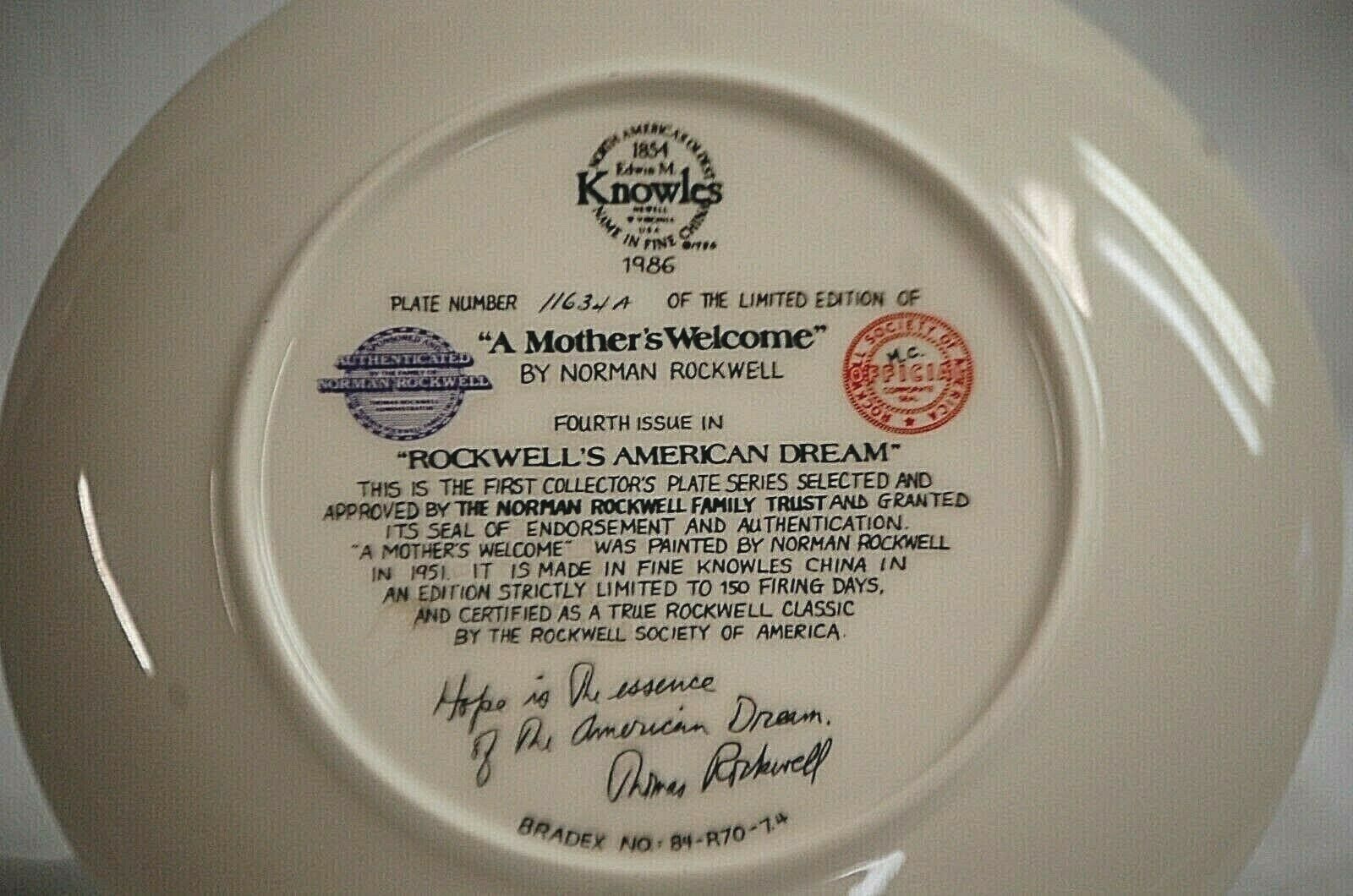 Rockwell's American Dream 1985 Collectors Plate A Mother's Welcome COA 11634A