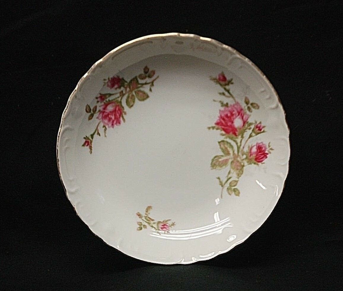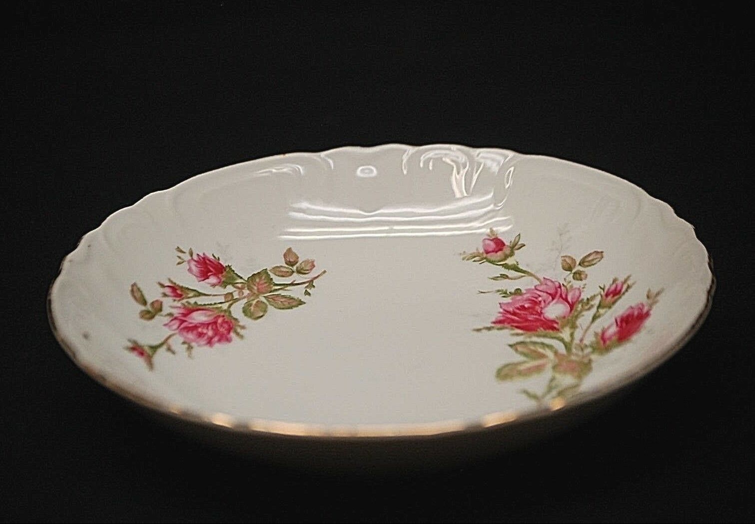 Royal Rose by Grantcrest 7-1/2" Coupe Soup Bowl Moss Rose w Scalloped Gold Trim
