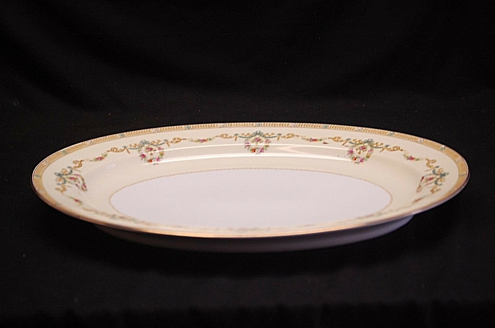 Vintage 1930's Noritake Tybalt 16" Oval Serving Platter Floral Swag Blue Ribbon