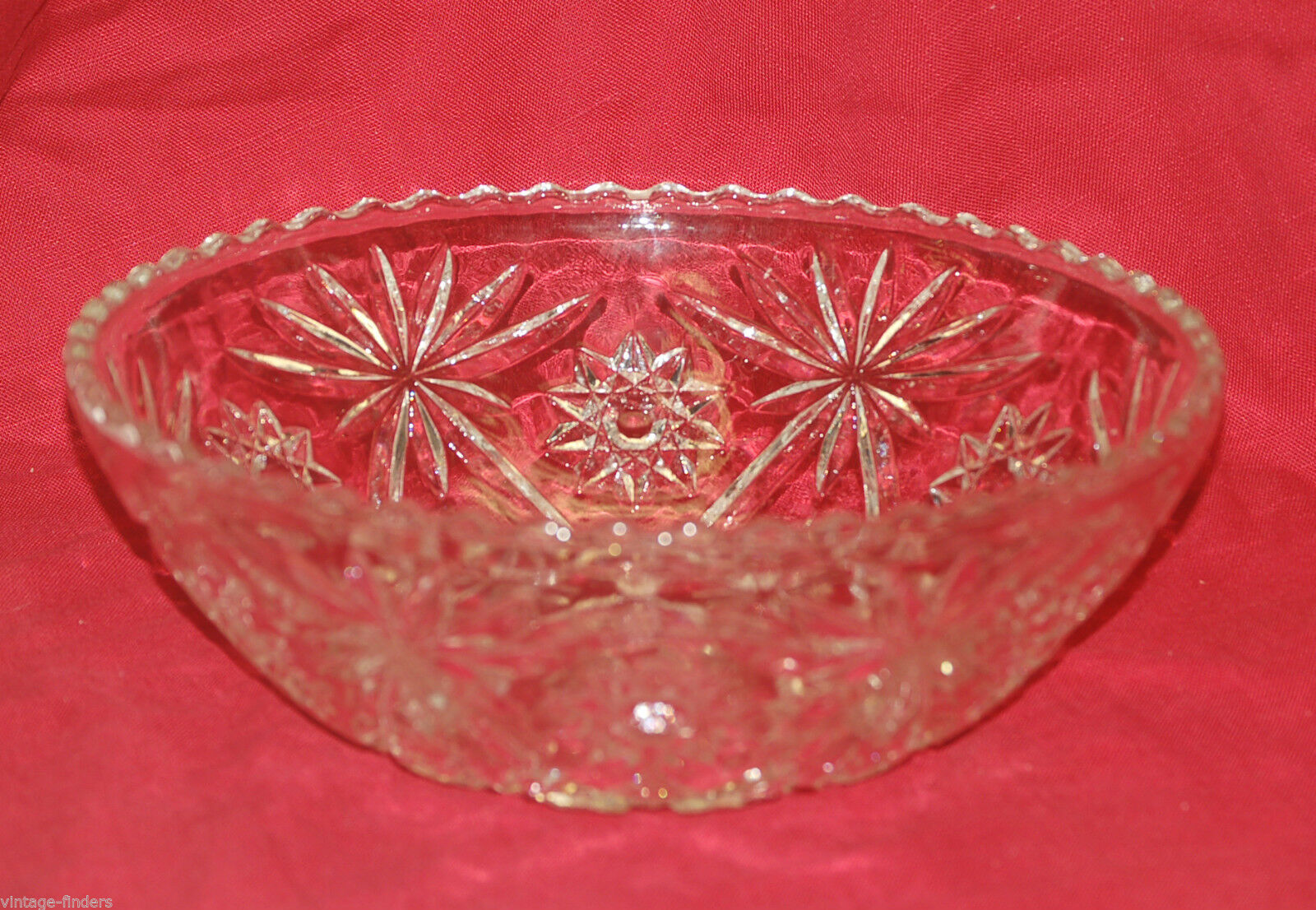 Vintage Anchor Hocking EAPC Clear Glass 10-3/4" Serving Bowl Dish Star of David