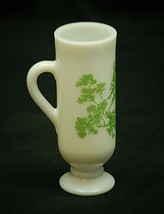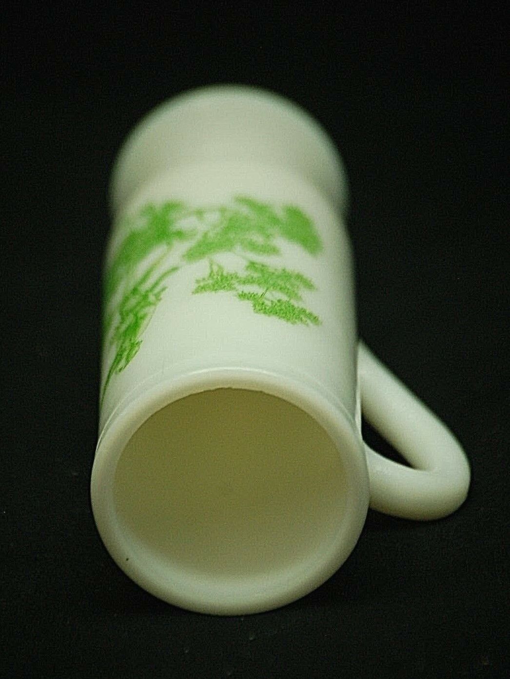Vintage Avon Milk White Opaque Pedestal Glass Cup w Green Toile Victorian Scene