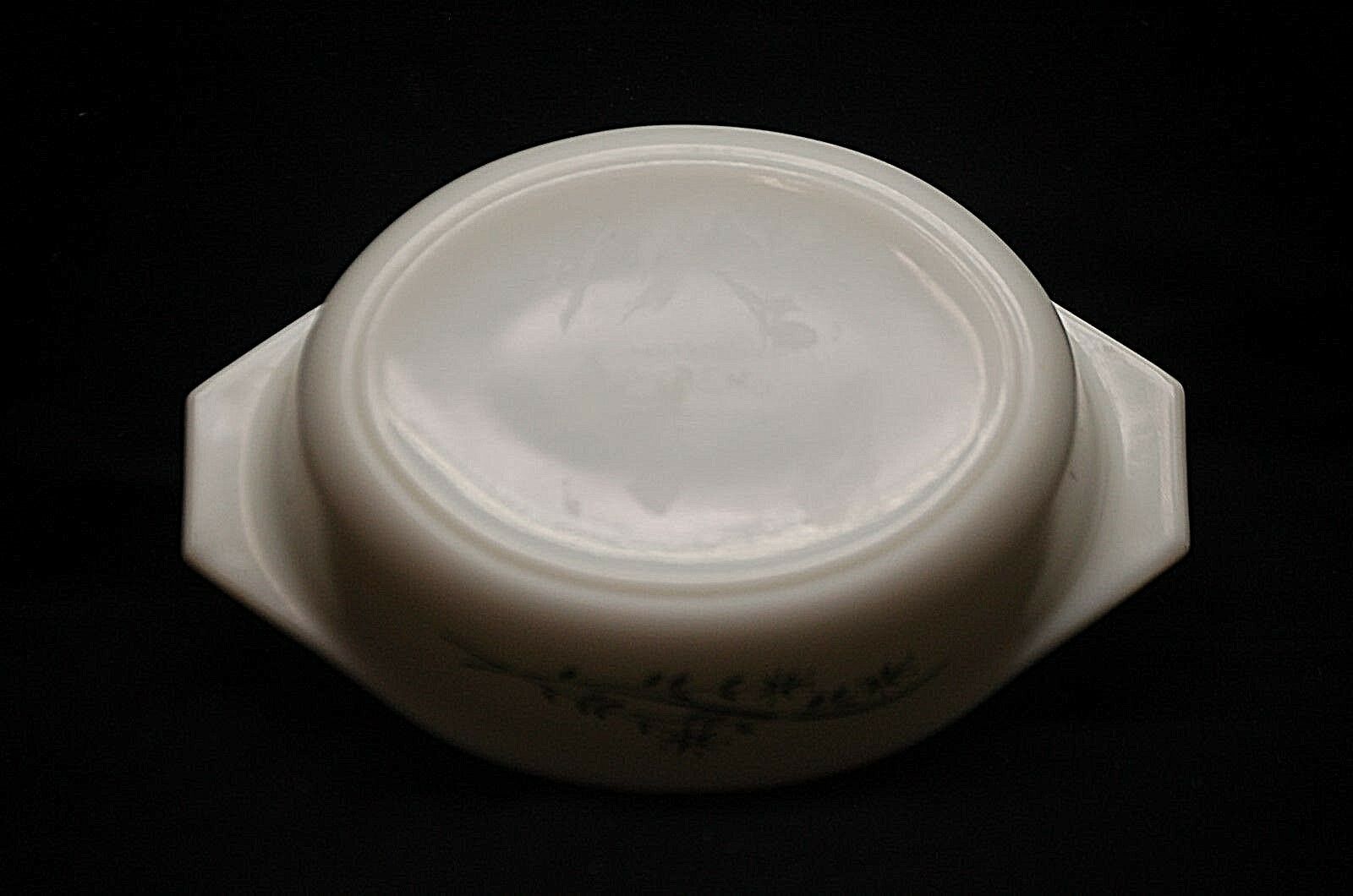 Vintage Green Honeysuckle by Pyrex 1.5 Qt. Oval Casserole Bowl Starburst Flowers
