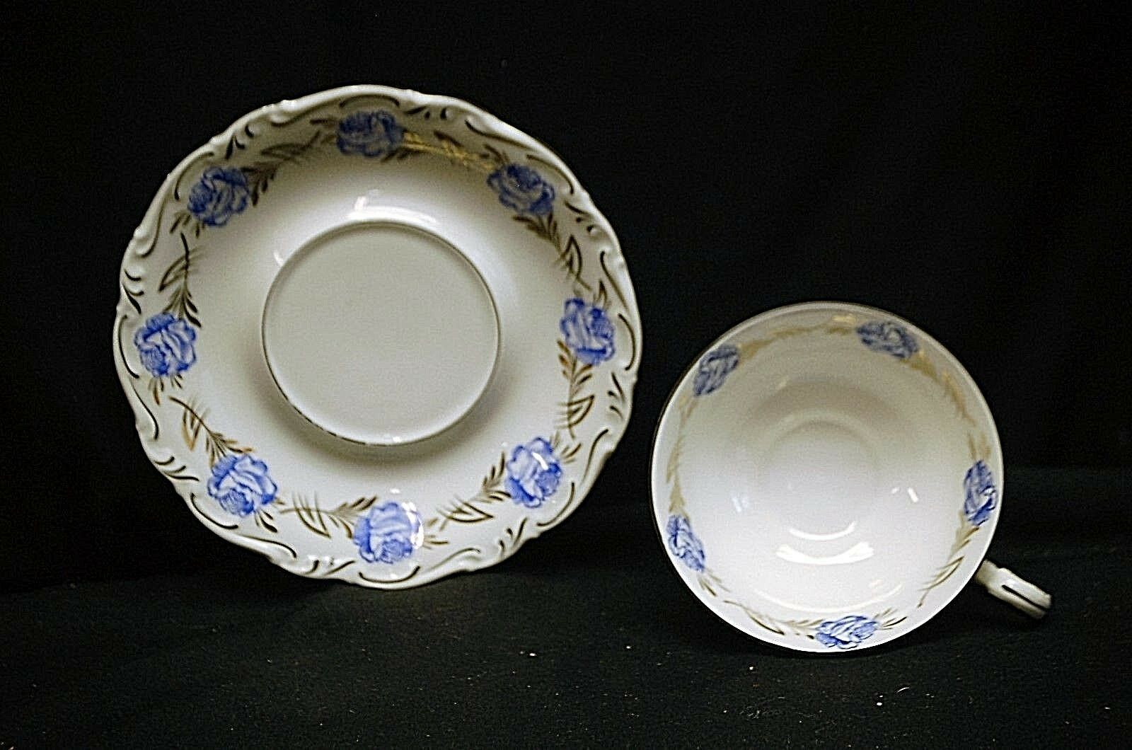 Vintage Hertel Jacob Rehau Bavaria Germany Cup & Saucer Set Blue Rose Gold Stem