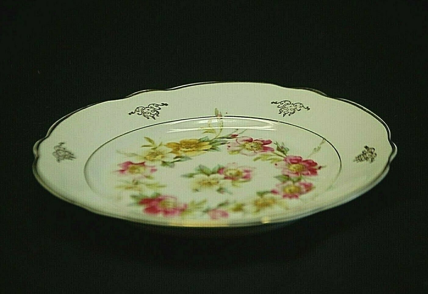 Vintage Porcelain Embossed Salad Plate Pink Yellow White Floral Gold Trim c