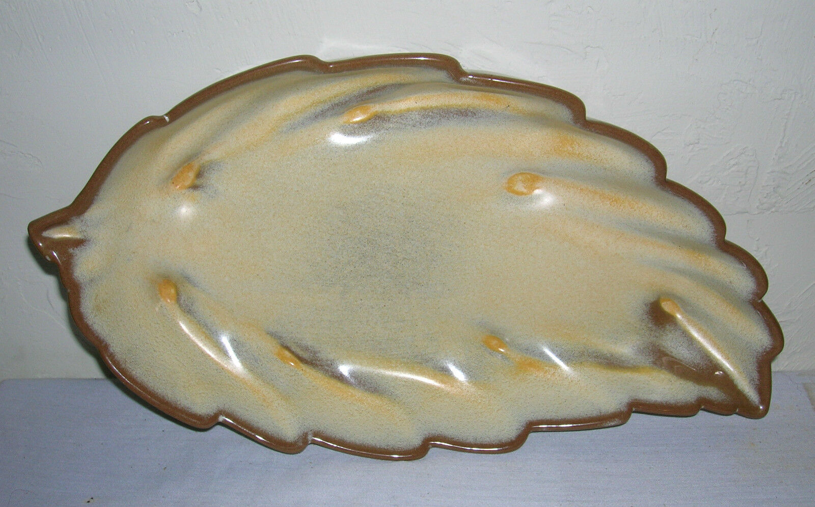 Vintage Plainsman Gold Willow Leaf Dish Bowl by Frankoma Art Pottery 226