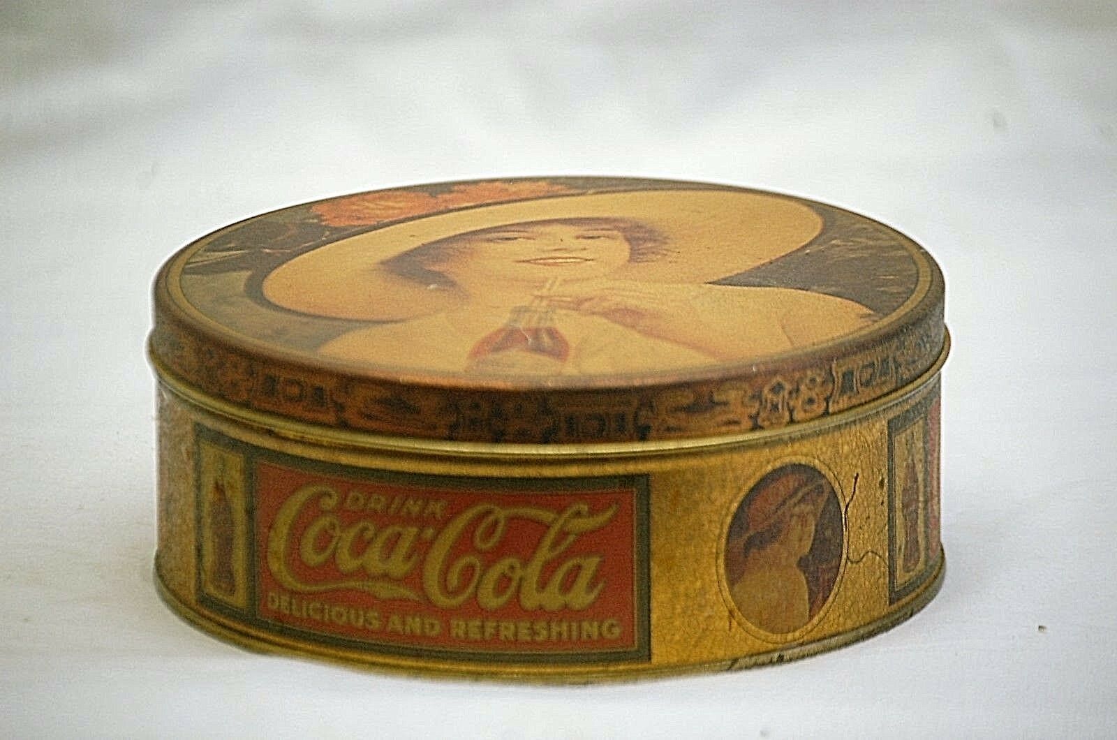 Vintage Style Advertising Ad Drink Coca Cola Coke Litho Tin Can Container w Lid