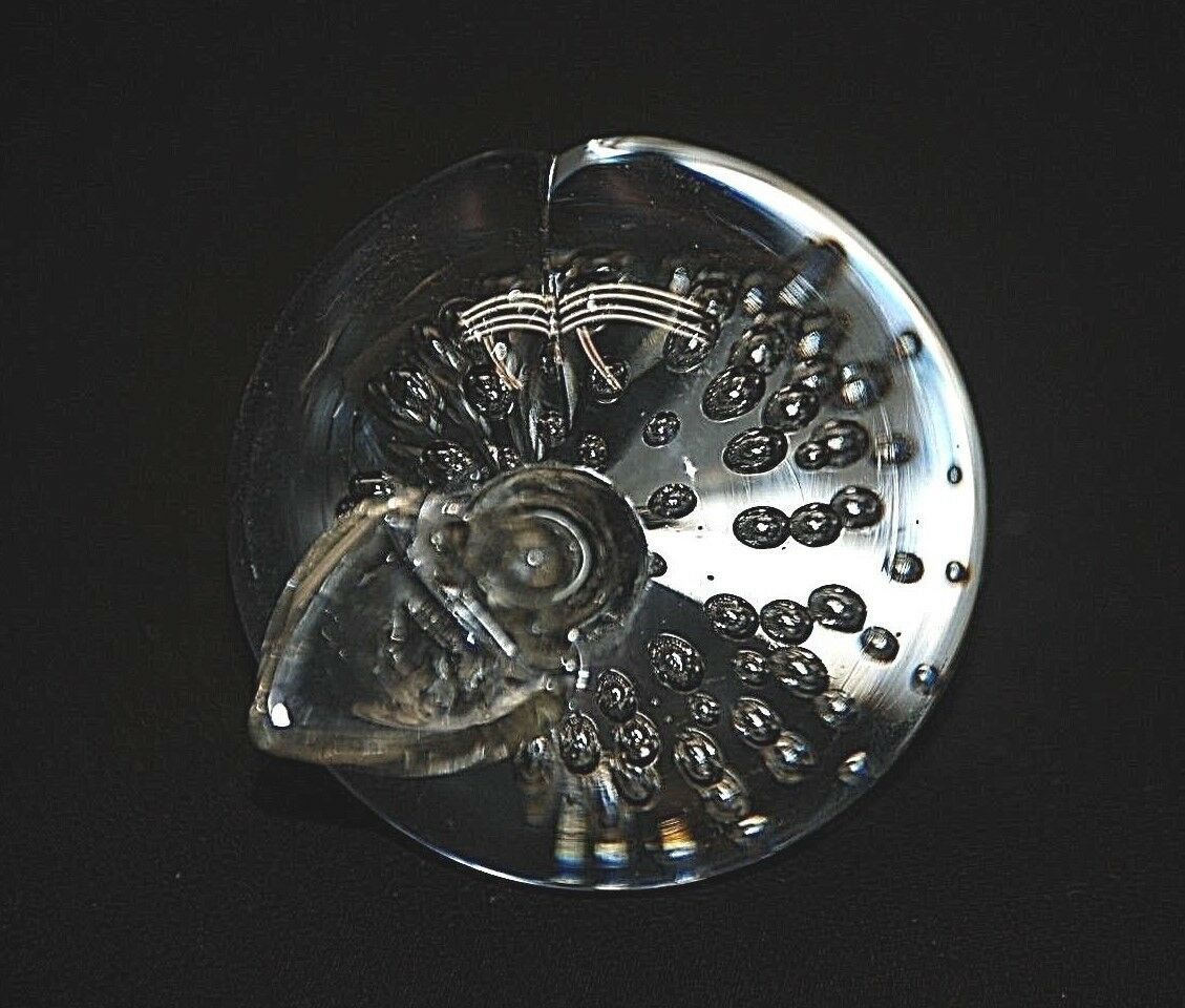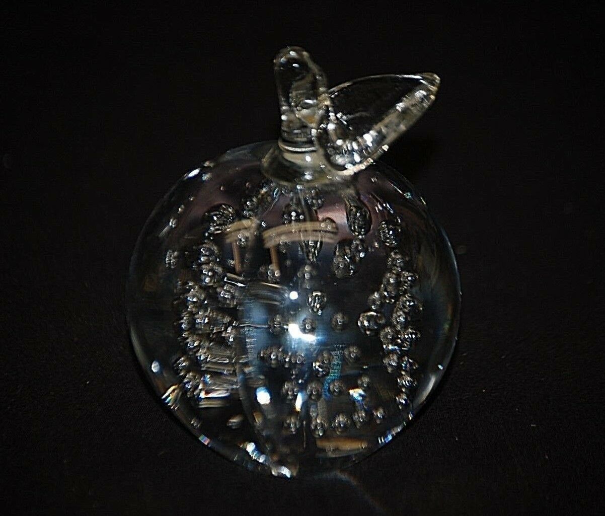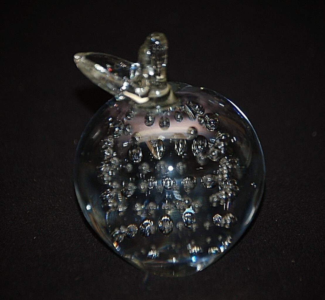 Vintage Studio Art Glass Paperweight Hand Made Crystal Peach Controlled Bubbles