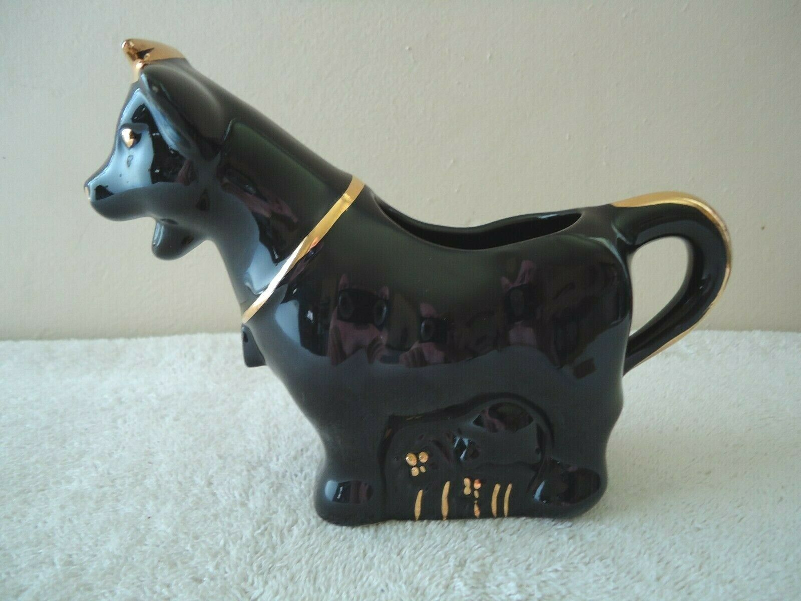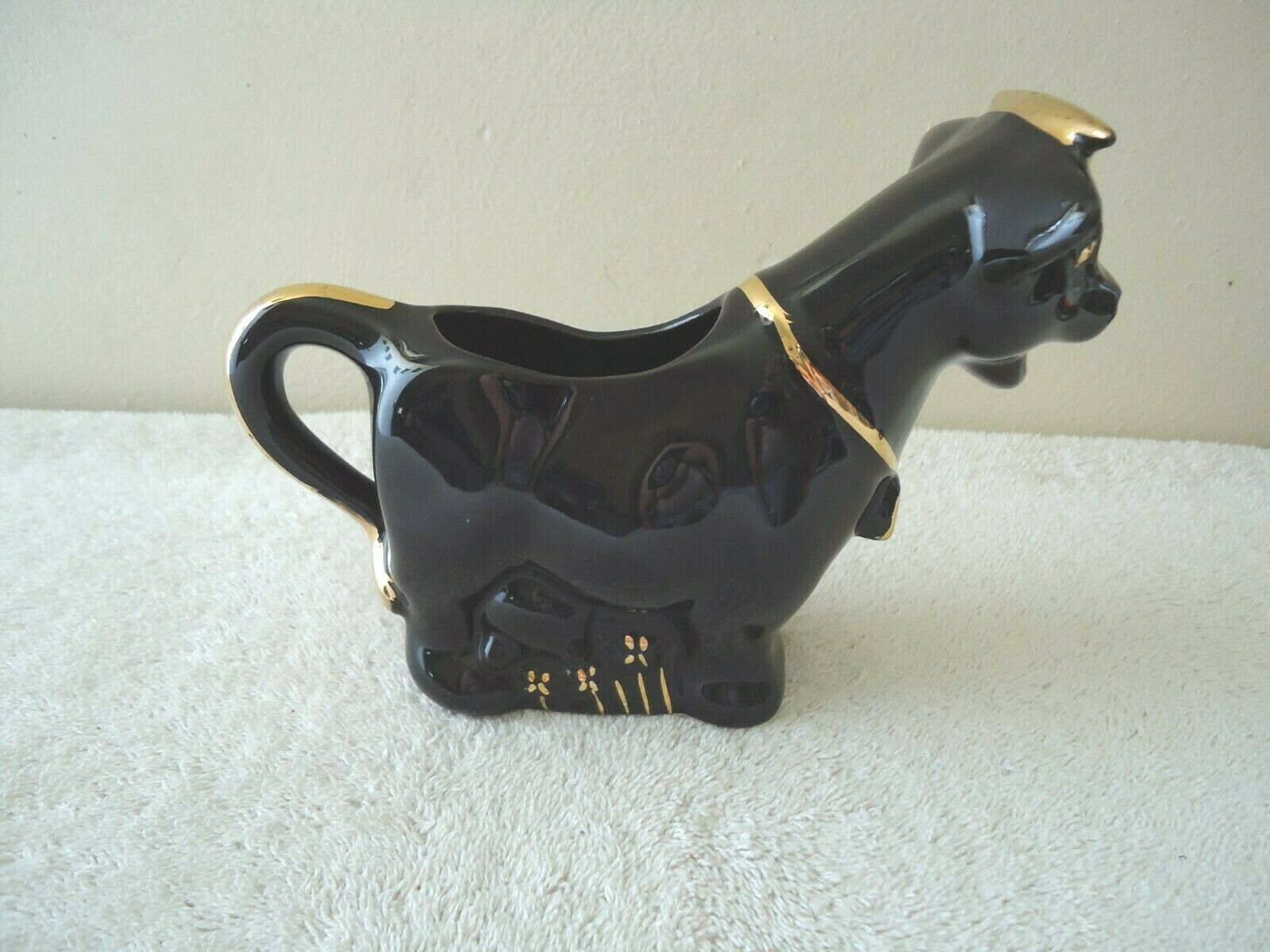 Here is a Vintage Black Cow Creamer " BEAUTIFUL COLLECTIBLE DISPLAYABLE ITEM ".This is a must for any collector,or decorator wanting that vintage retro look. The pics do not do this item(s) justice.If you have any concerns or questions about this item(s) please ask before bidding / purchasing this item(s).Thank You.-(PC46)