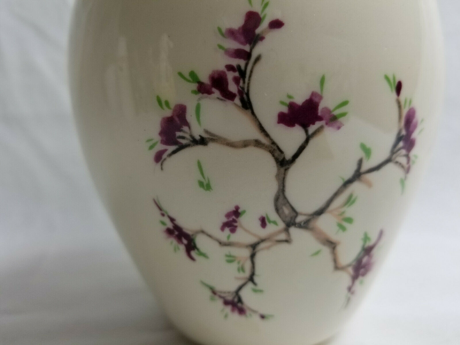 Ginger Jar Vase Tranquil Purple Floral Design White 5.5"