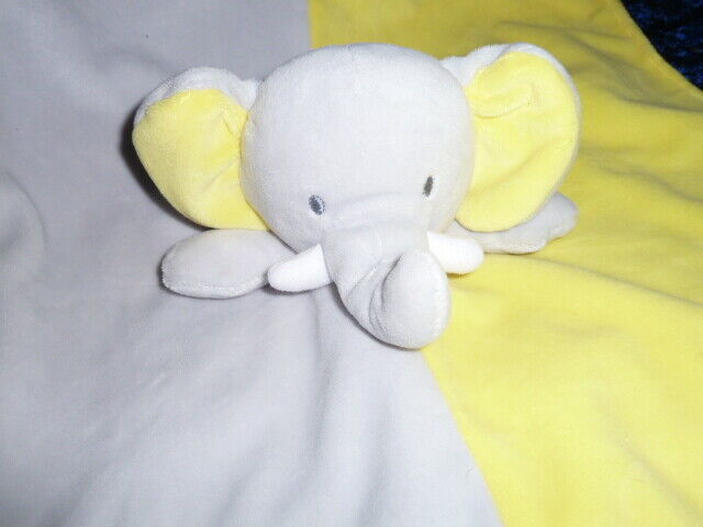 OKIE DOKIE ELEPHANT Security Blanket Rattle Grey Yellow "HUGS" Satin