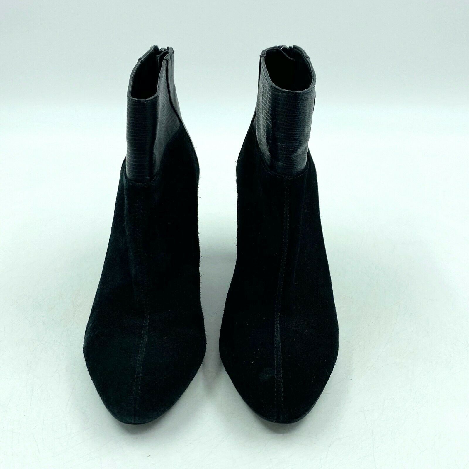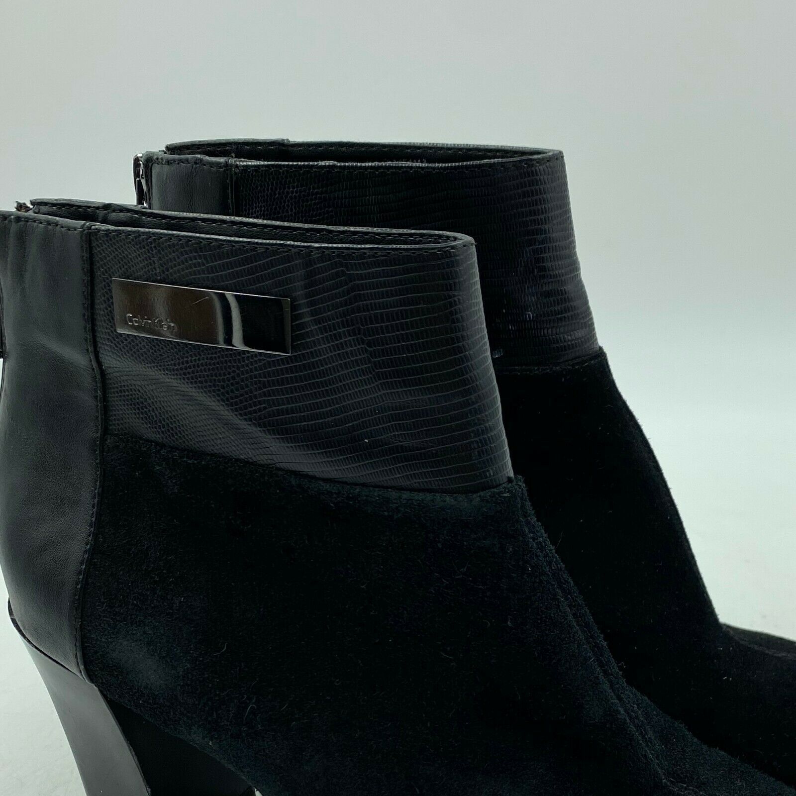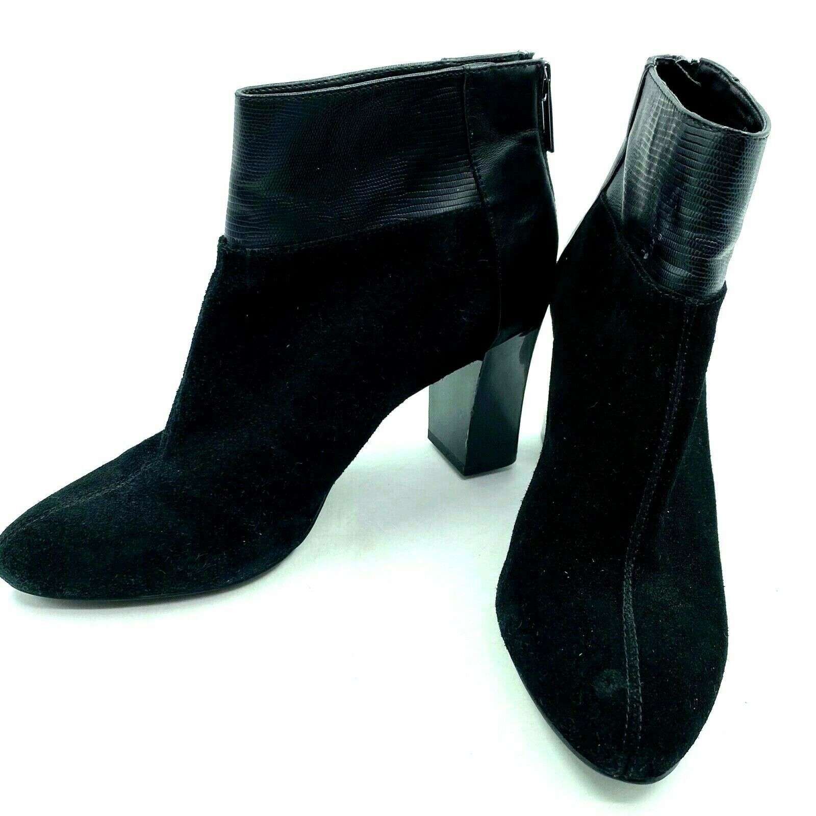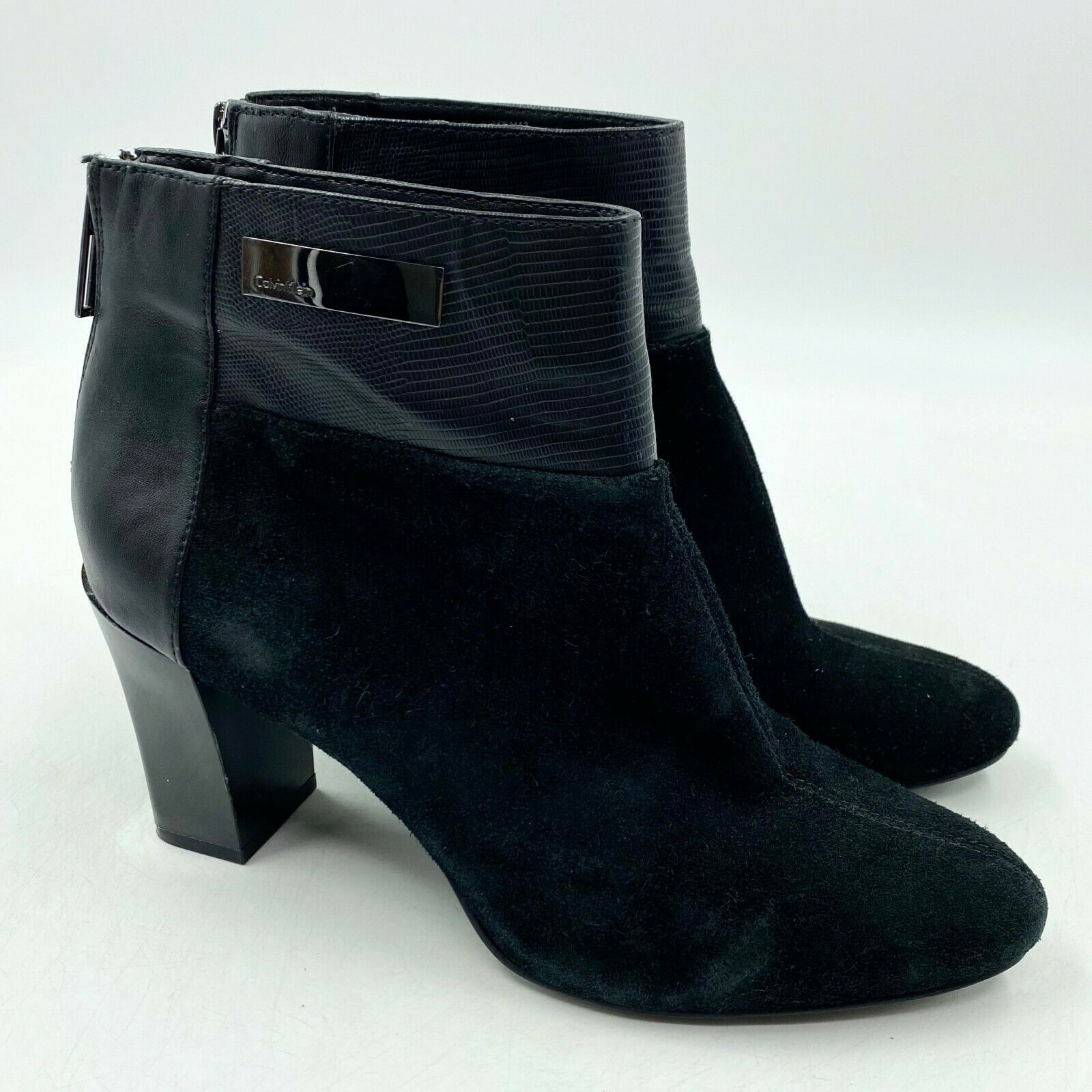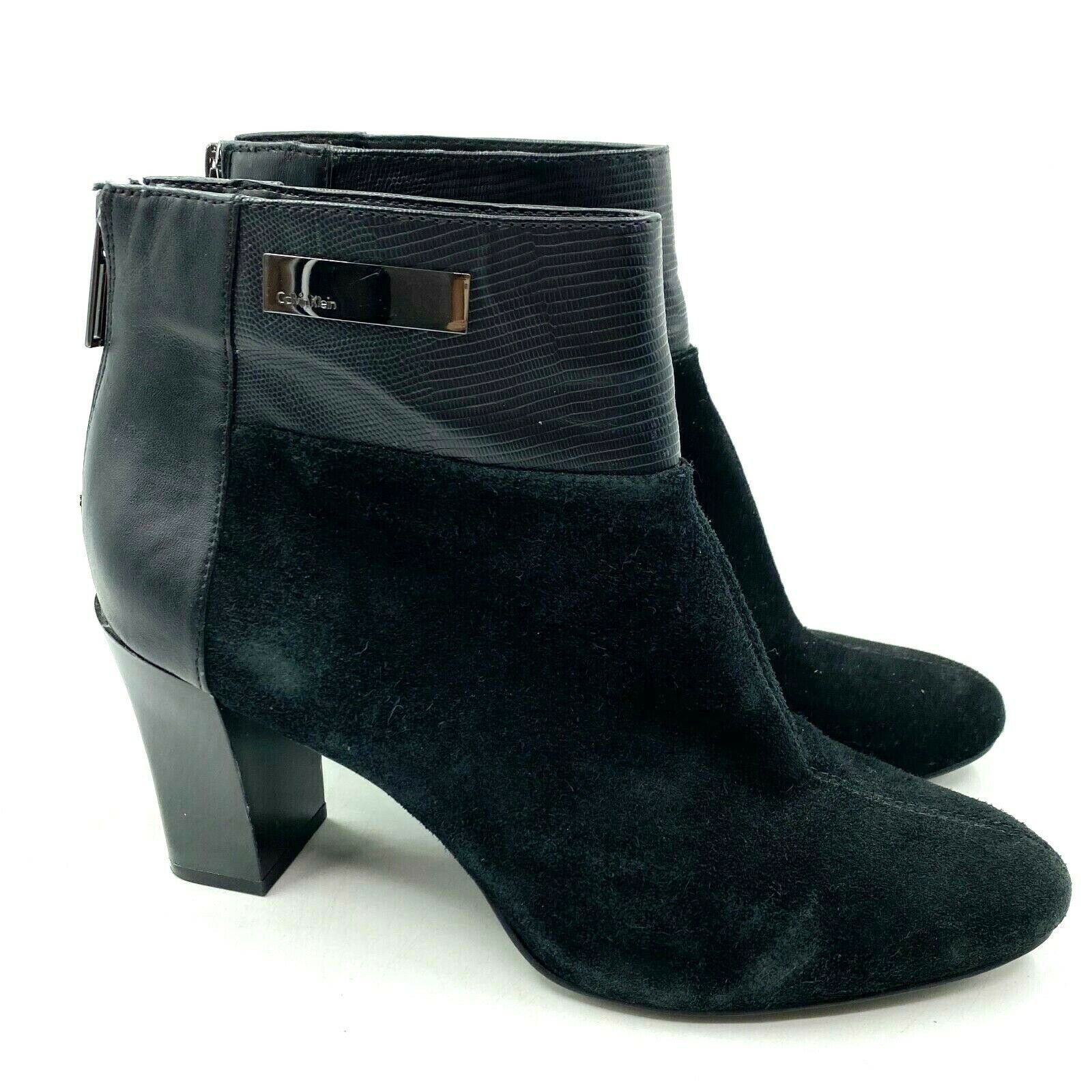 Calvin Klein Ankle Boots Womens Size 8 Black Suede Block Heel Zip Booties