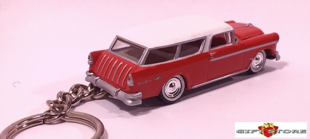 RARE KEY CHAIN RED WHITE 1955/1956 CHEVY NOMAD BEL AIR CHEVROLET CUSTOM Ltd Ed