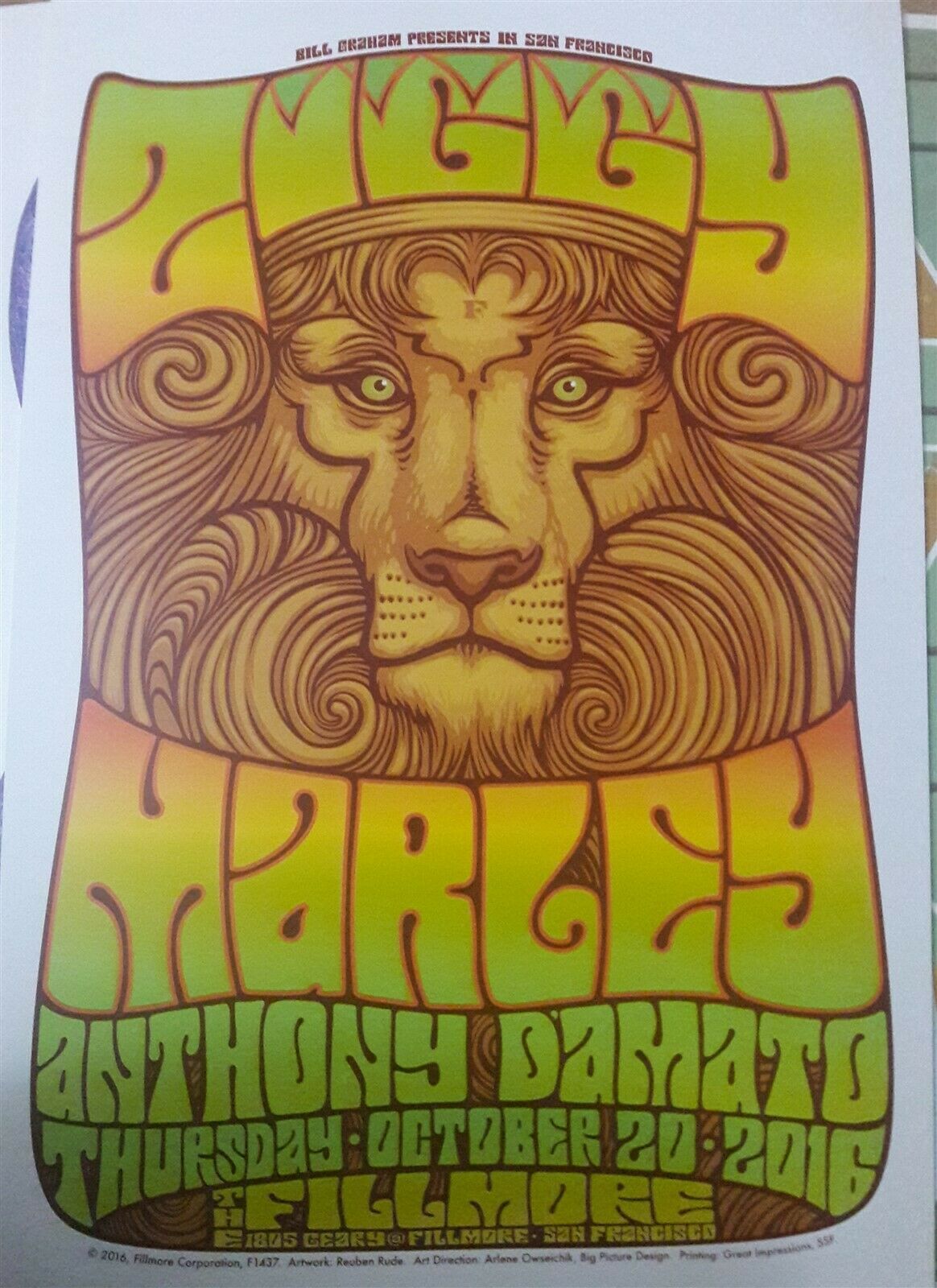 Mint Ziggy Marley Fillmore Poster 2016 Bob