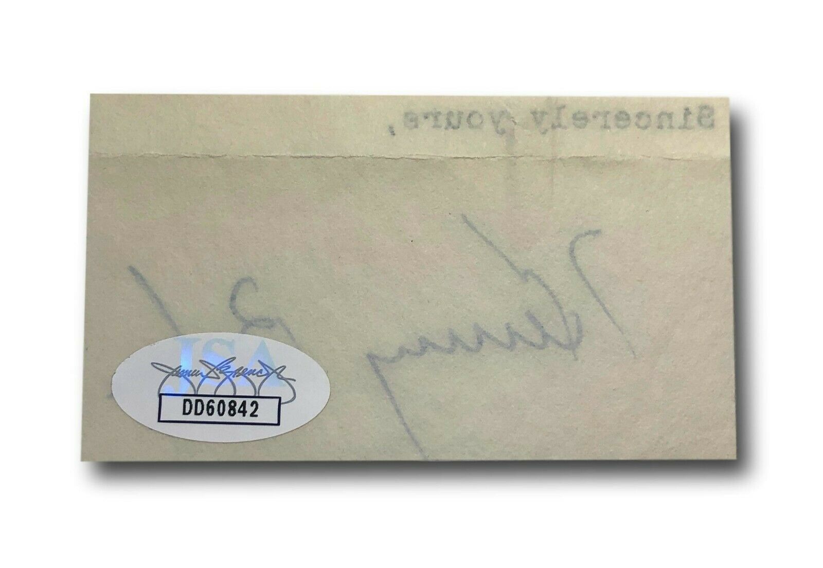 CERTIFICATE OF AUTHENTICITY: THIS AUTOGRAPH IS CERTIFIED AUTHENTIC BY JAMES SPENCE AUTHENTICATION (JSA), ONE OF THE LARGEST MOST REPUTABLE AUTHENTICATORS IN THE INDUSTRY. THIS PIECE INCLUDES THE JSA TAMPER PROOF AUTHENTICATION STICKER ON BACK OF THE ITEM, AND IDENTIFICATION CARD DIRECTLY FROM THEM, WHICH CAN ALSO BE ACCESSED ANYTIME/ANYWHERE ON THEIR ONLINE DATABASE ON THEIR WEBSITE.