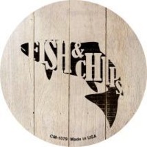 Fishes Make Fish and Chips Novelty Metal Mini Circle Magnet CM-1079. 3.5" x 3.5" high gloss metal mini circle with magnet on the back. Made of the highest quality aluminum for a weather resistant finish. It is lightweight durable. Proudly made in the USA.